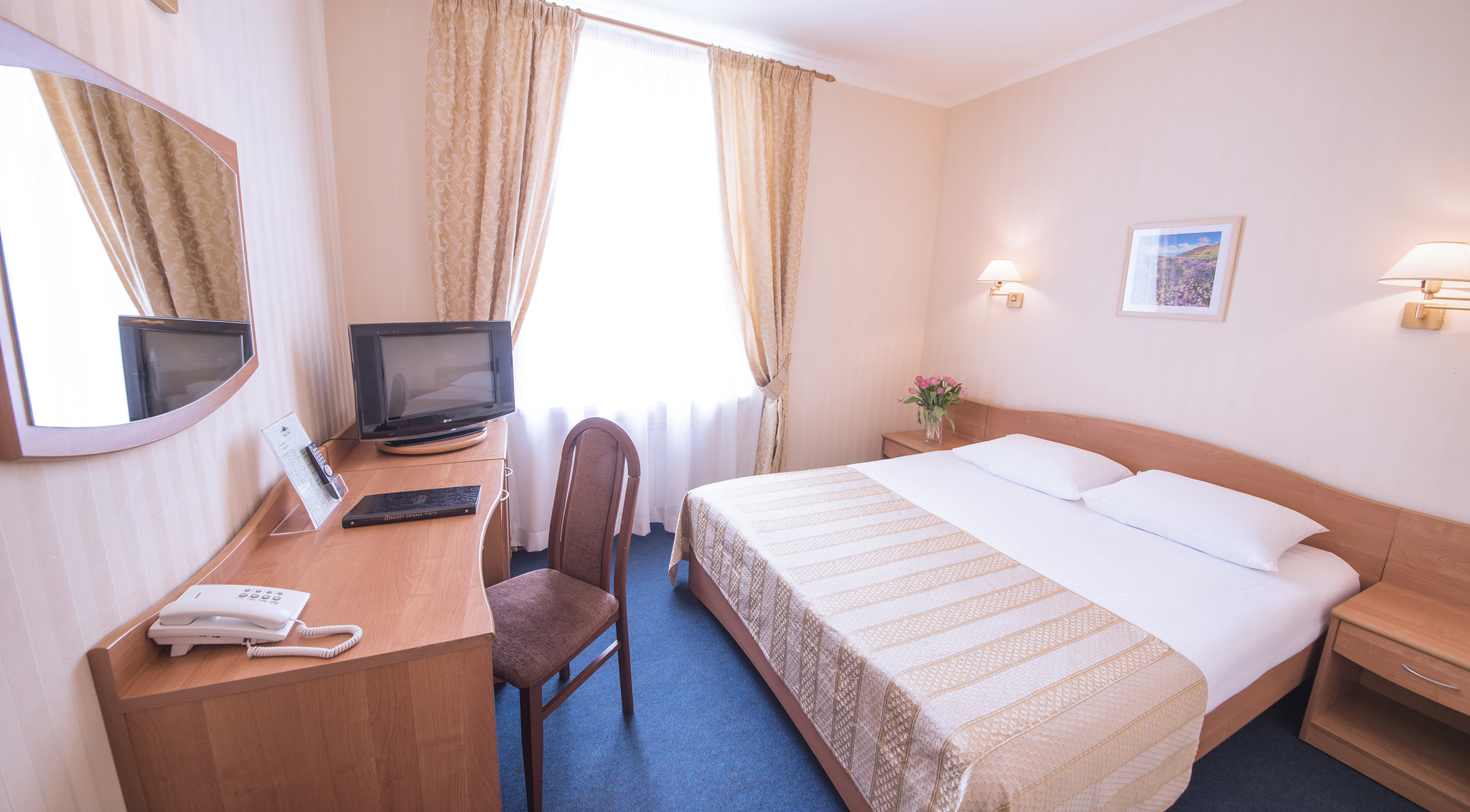 Номера одноместного размещения оформлены в современном стиле и светлых тонах. В номерах есть все необходимые удобства: удобная кровать, просторная ванная комната с феном, бесплатный Интернет Wi-Fi.