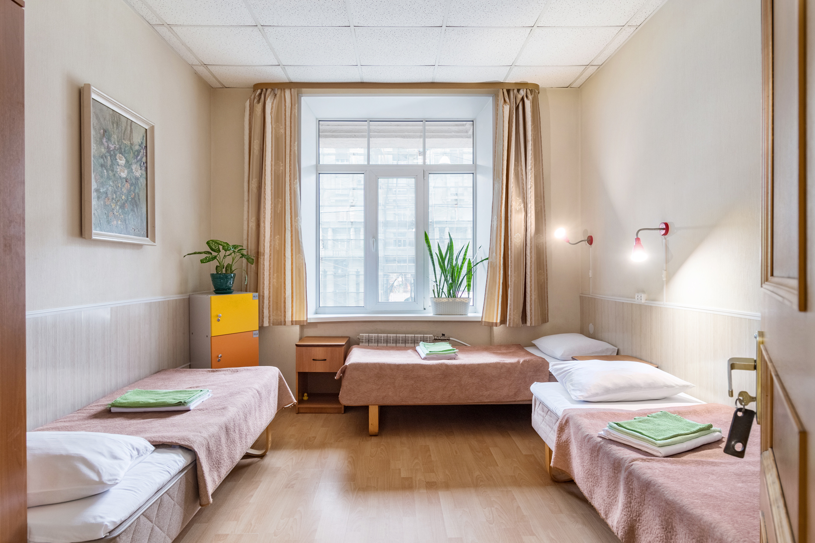 Номера эконом-класса двухместного размещения оформлены в современном стиле и светлых тонах. В номерах есть вся необходимая мебель, холодильник, телевизор, шкаф. Душевая комната и туалеты находятся на этаже, отделаны кафельной плиткой, ежедневно убираются горничными и содержатся в идеальной чистоте и порядке.