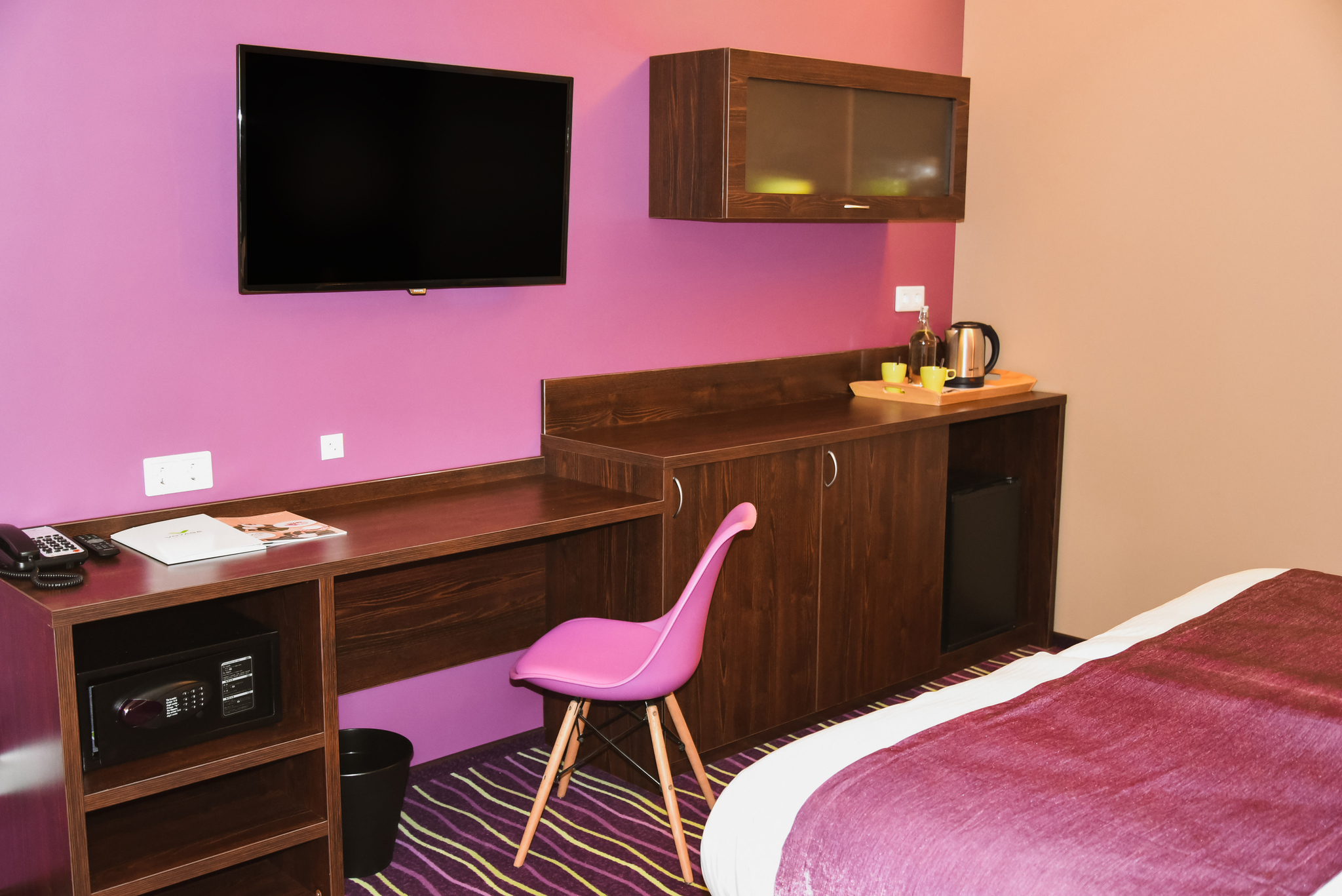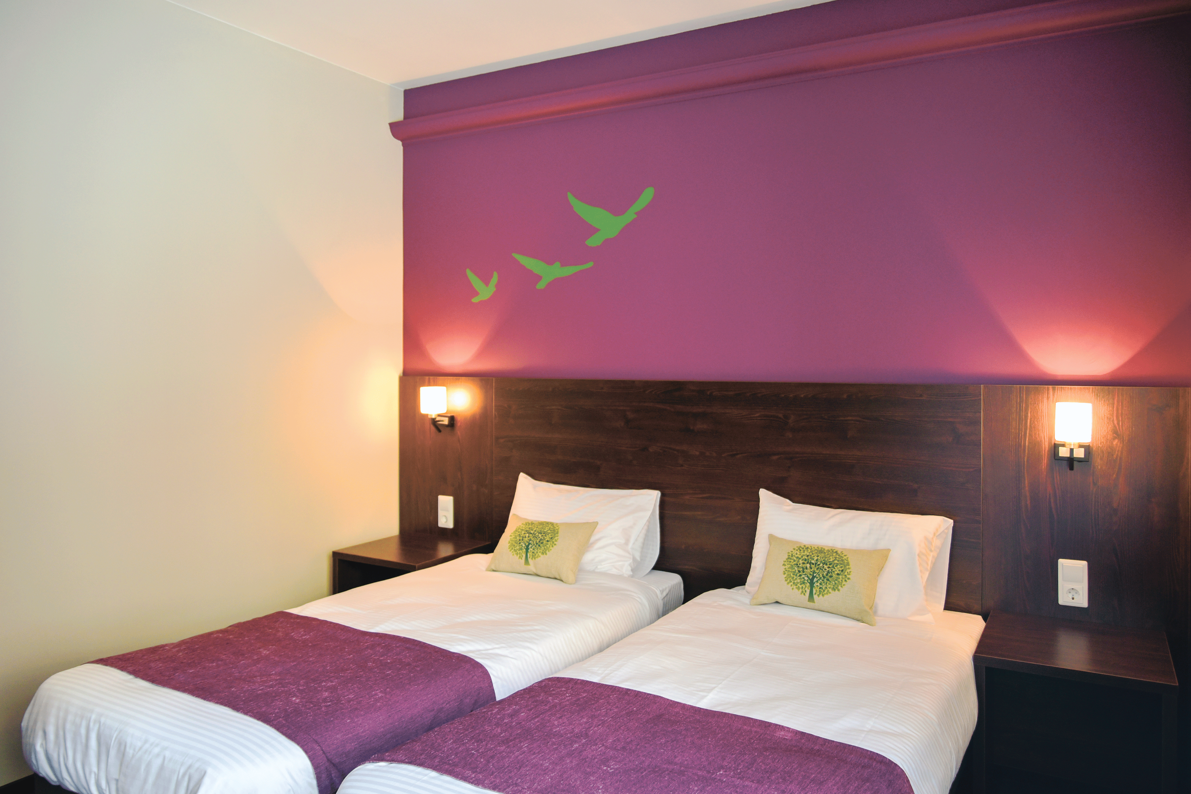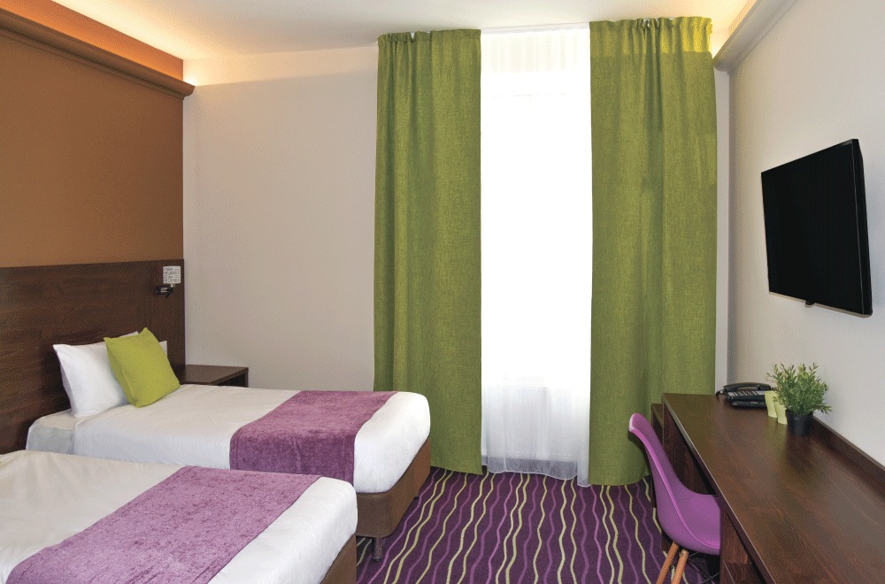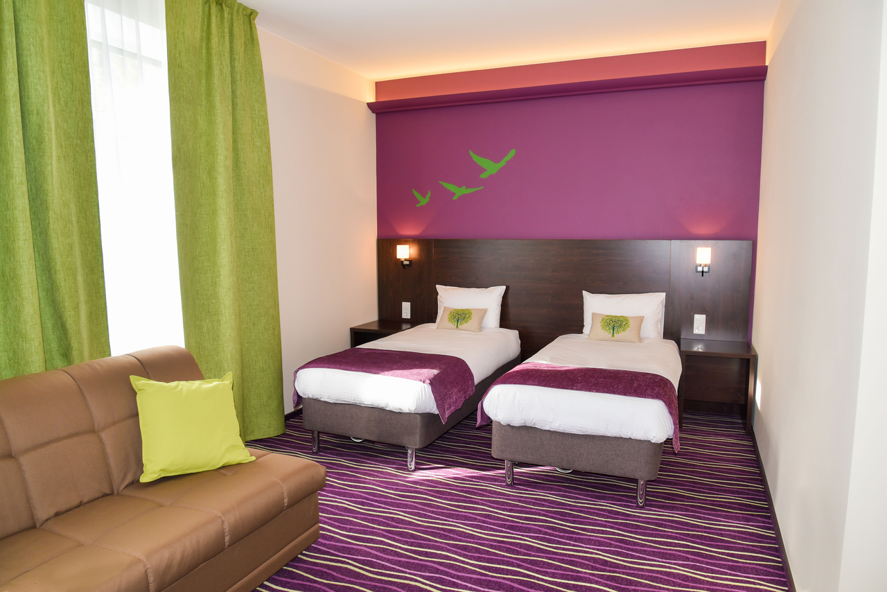 Современный гостиничный номер подойдет как для длительного проживания, так и для того, чтобы отдохнуть с дороги. Душ, туалет, телевизор, холодильник. Есть номера с 1 большой кроватью или с двумя раздельными кроватями.