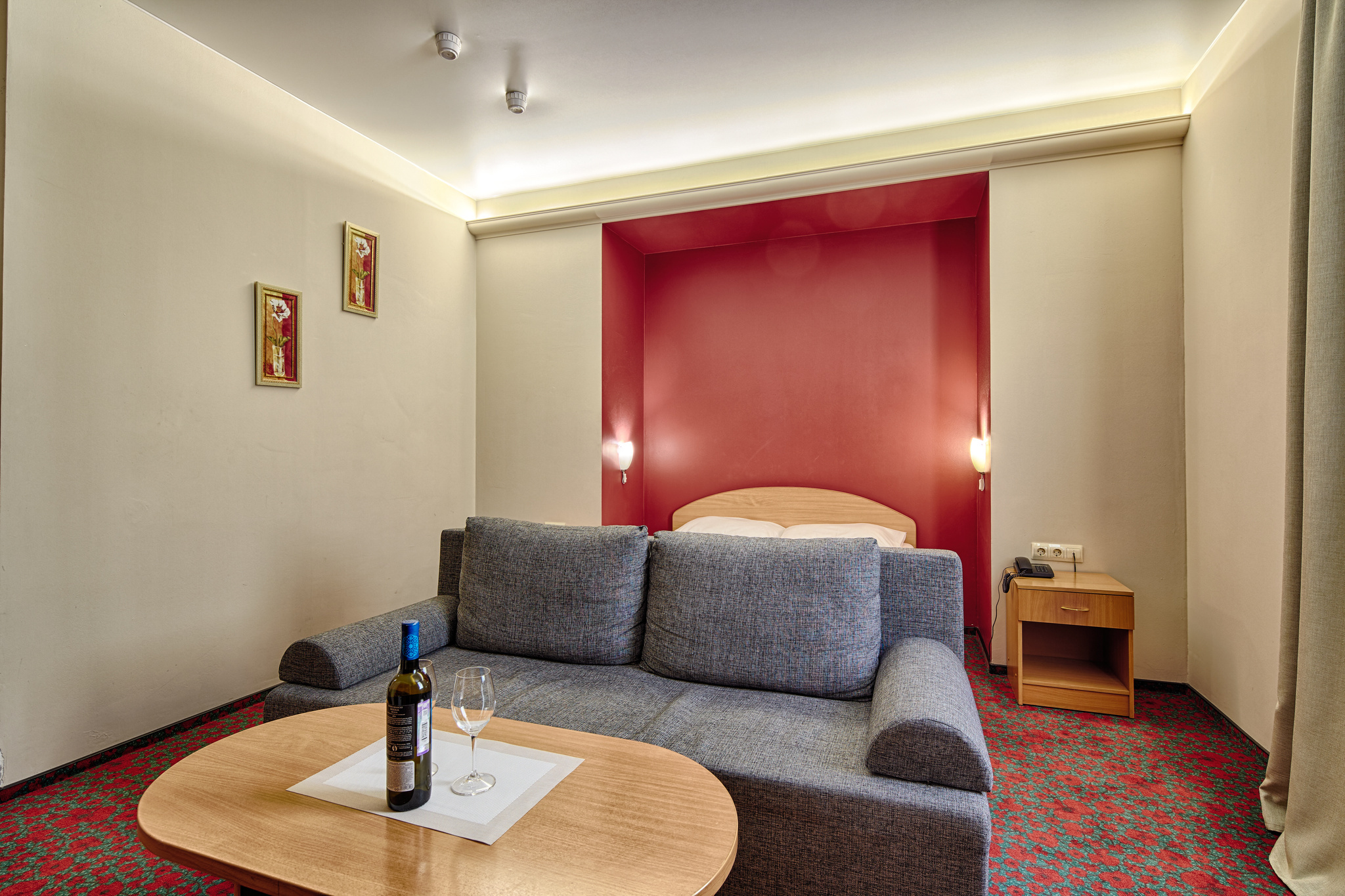 Полулюкс - номер высшей категории. В номере Полулюкс гости будут чувствовать себя как дома: большая ванная комната с подогревом полов, ванная, капсульная кофемашина, электрочайник, посуда, большой раскладной диван, а также плазменный телевизор 40"