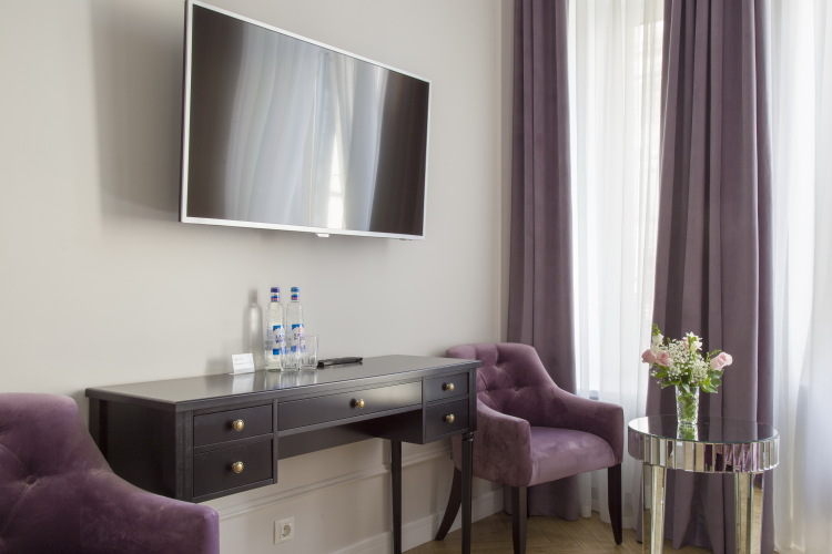 В номере вас будут ждать телевизор, мини-бар и халат. Перечисленные услуги есть не во всех номерах.