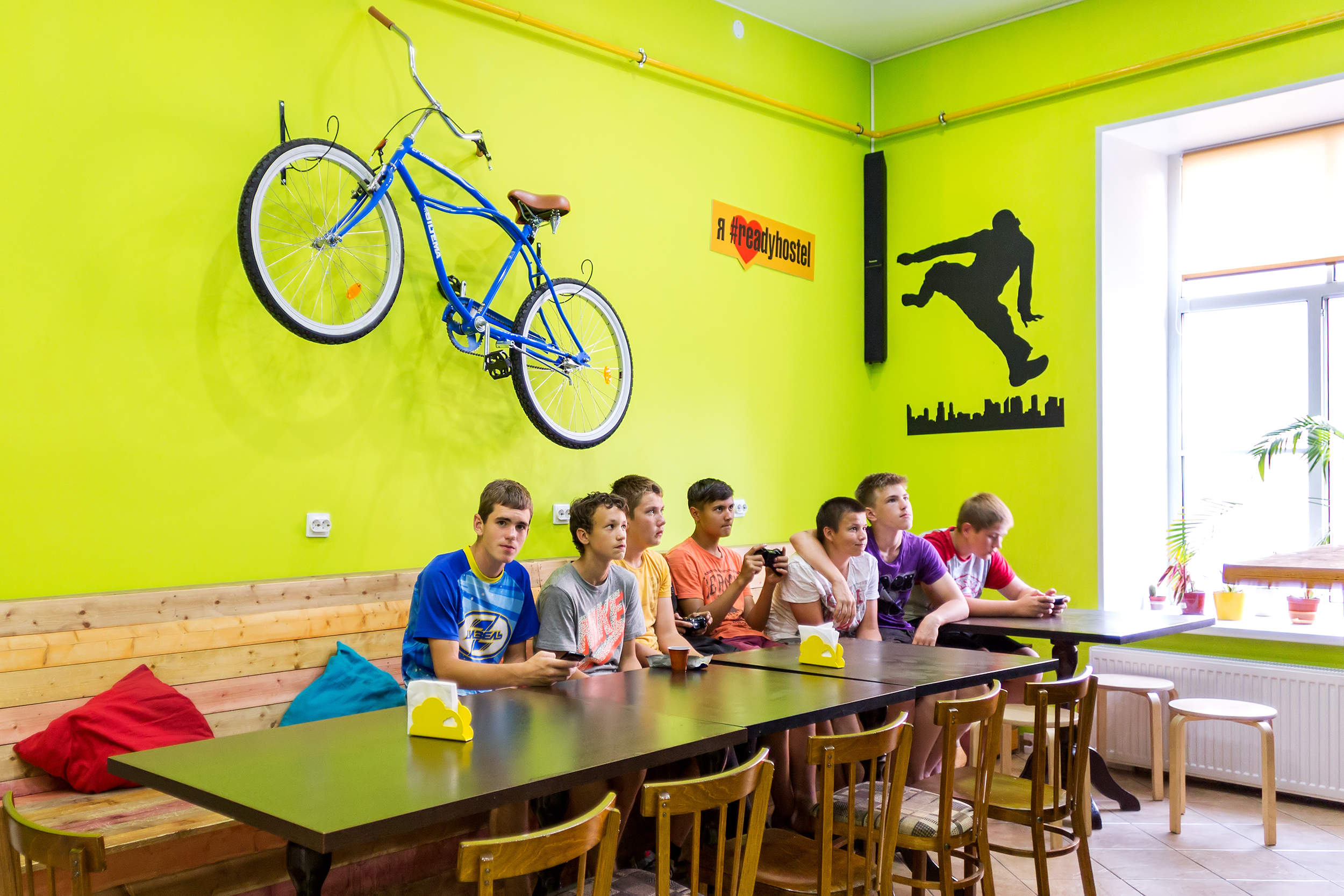 В хостеле имеется свой собственный спортзал, Вы можете бесплатно посещать его в любое удобное время! Также в спортзале регулярно проводятся групповые занятия, такие как Йога, Zoomba, CrossFit. Для гостей хостела посещение занятий – бесплатное. В хостеле возможно заказать экскурсию, купить сувенирную продукцию. Качественный сервис и низкая стоимость номеров — основные достоинства Ready Steady Hostel! В числе удобств и услуг хостела — круглосуточная стойка регистрации, закрывающиеся шкафчики-локеры, бесплатный Wi-Fi, гостевой компьютер, современная кухня и оснащенный спортзал. Гости пользуются общей просторной ванной комнатой. Благодаря большому количеству душевых в хостеле не бывает очередей, а круглосуточная уборка обеспечивает высокий уровень чистоты в хостеле.