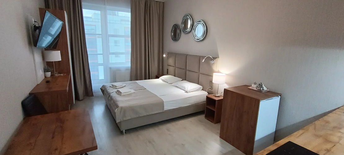 В номере гостей ждут телевизор. Оснащение зависит от выбранной категории номера.