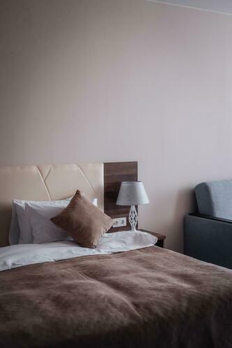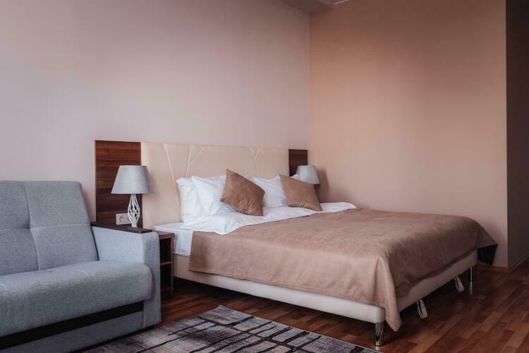 Номер "Стандарт" идеально подходит для размещения 1-2 человек. Площадь номера варьируется от 18 до 25 кв.м. В каждом номере имеется спальная зона с удобной двуспальной кроватью с высоким ортопедическим матрасом, рабочая зона с функциональным рабочим столом, плазменным телевизором, wi-fi, кондиционером, сейфом, мини-баром, чайно-кофейной станцией, утюгом и гладильной доской и просторная ванная комната. Номера данной категории с видом в уютный внутренний дворик отеля, а на мансардном этаже с роман