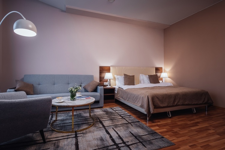 Уютный номер Смарт стандарт прекрасно подходит для деловых поездок. Средняя площадь номера – 16-17 кв. м., вид – в тихий внутренний дворик отеля, вместимость - 1-2 человека. Каждый номер оснащен: двуспальной кроватью с высоким ортопедическим матрасом, функциональным рабочим столом, плазменным телевизором, wi-fi, кондиционером, сейфом, мини-баром, чайно-кофейной станцией, утюгом и гладильной доской.