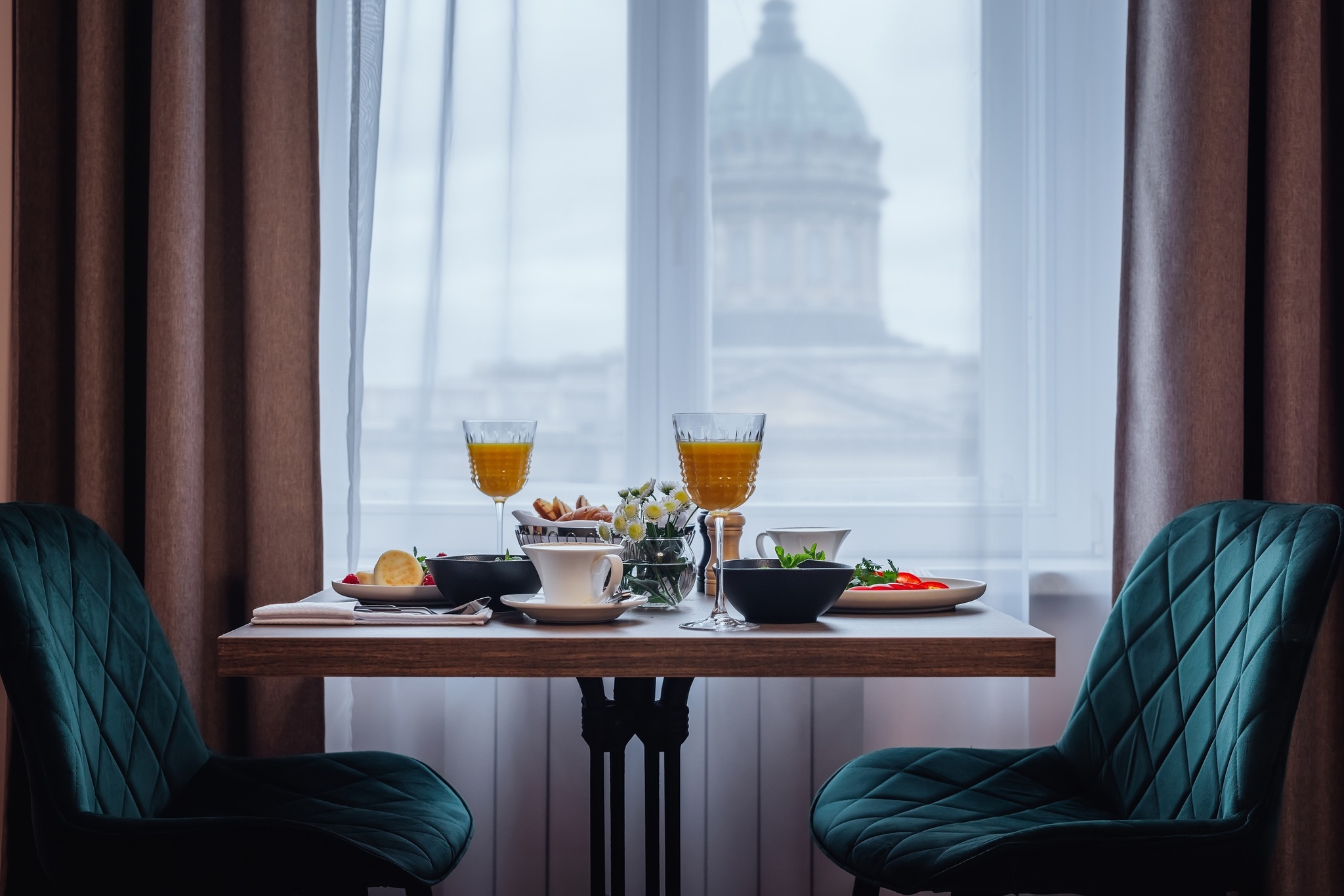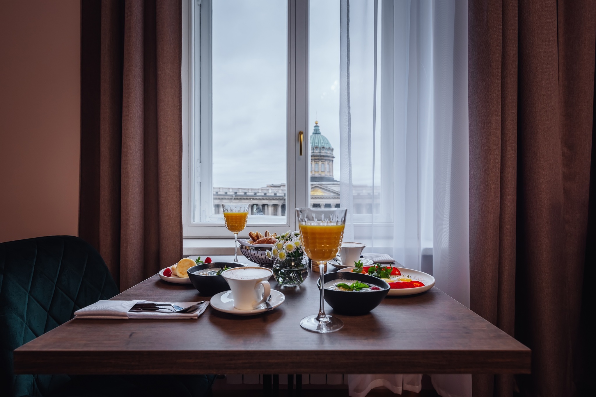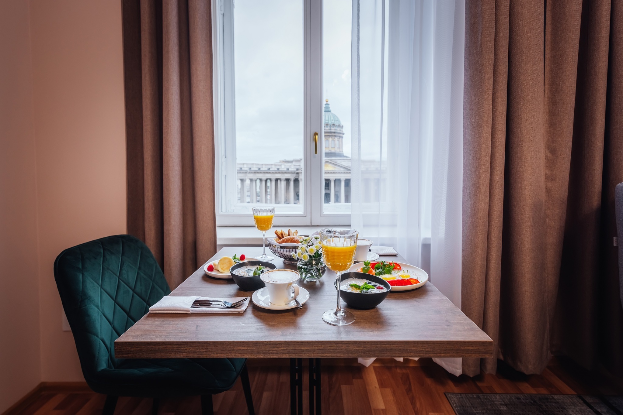 Мы предлагаем своим гостям 47 номеров различных категорий - от стандарта до люкса с собственным видовым балконом. Каждый номер уникален интерьером в современном стиле. Из большинства из них открывается роскошный панорамный вид на Казанский собор, а также на пешеходную зону Малой Конюшенной улицы.