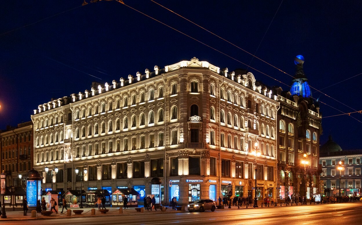 Элегантное здание, построенное в стиле "эклектика", вдоль Невского проспекта примыкает к известному дому компании «Зингер».