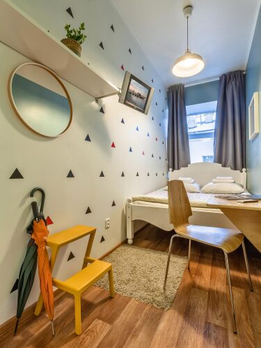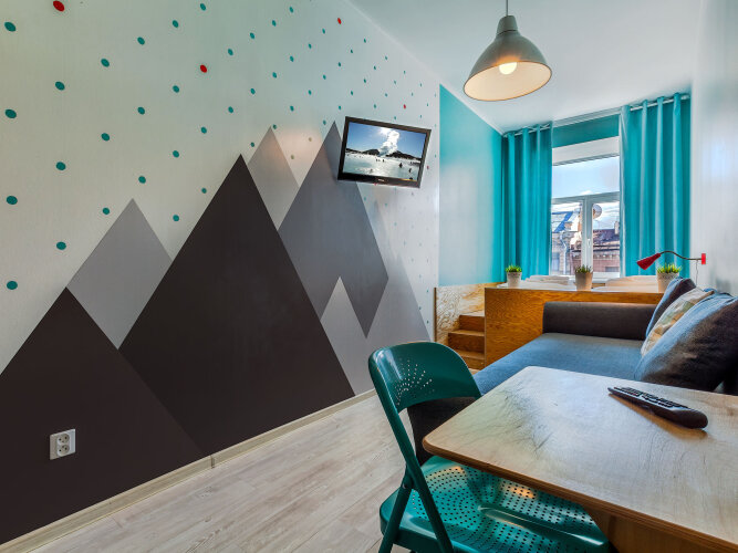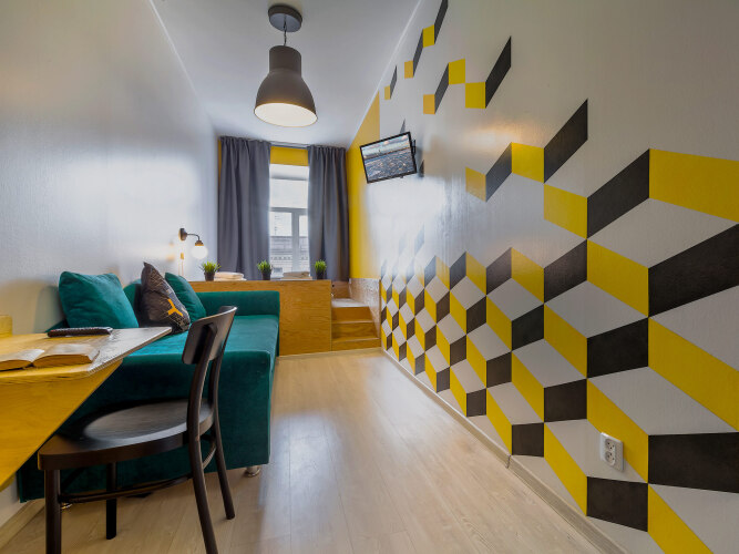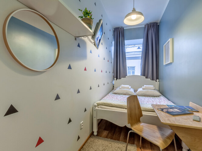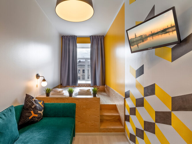 Администраторы встретят и разместят гостей в одной из 13 комнат. Каждая из них оформлена в стиле одной из европейских столиц: Лондона, Амстердама, Дублина или Копенгагена. Все предметы, использованные в оформлении, были привезены из поездок по Европе. Из некоторых комнат открывается вид на Невский проспект. Одна из комнат имеет собственные удобства — душ и туалет.