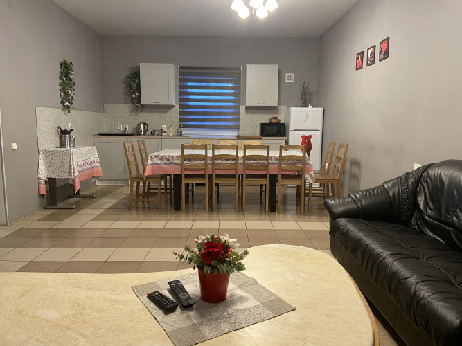 Максимально возможное размещение в гостевом доме — до 12 гостей. Коттедж имеет 8 стандартных отдельных кроватей и 5 отдельных комнат. В четырёх комнатах стоят по две отдельные кровати, а в пятой комнате стоит раскладной диван на двоих, ширина дивана составляет 160 см.