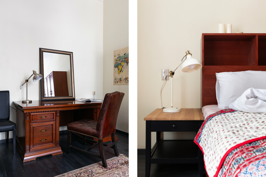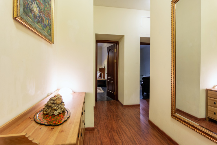 В квартире 2 комнаты, кухня, раздельный санузел с ванной, есть своя библиотека, установлена антикварная мебель, есть раскладывающийся диван и двуспальная кровать. Кухня оборудована для приготовления еды, имеются газовая плита, чайник, холодильник, микроволновая печь. К услугам гостей стиральная машина, фен, утюг, гладильная доска, доступ к сети Wi-Fi со скоростью 300 Мбит/с.