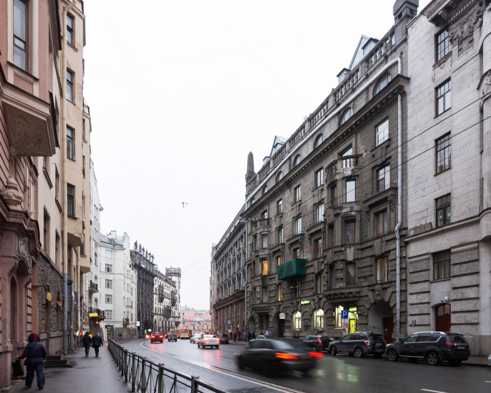 Квартира подходит для семейного размещения, её площадь составляет 80 кв.м, с балкона открывается вид на Большой проспект Петроградской стороны, окна также выходят во двор.