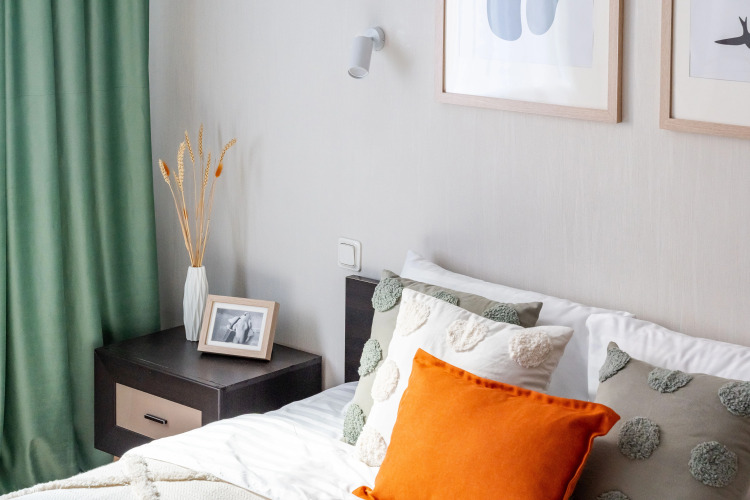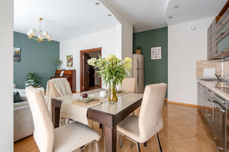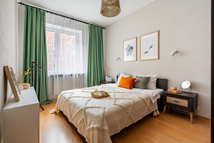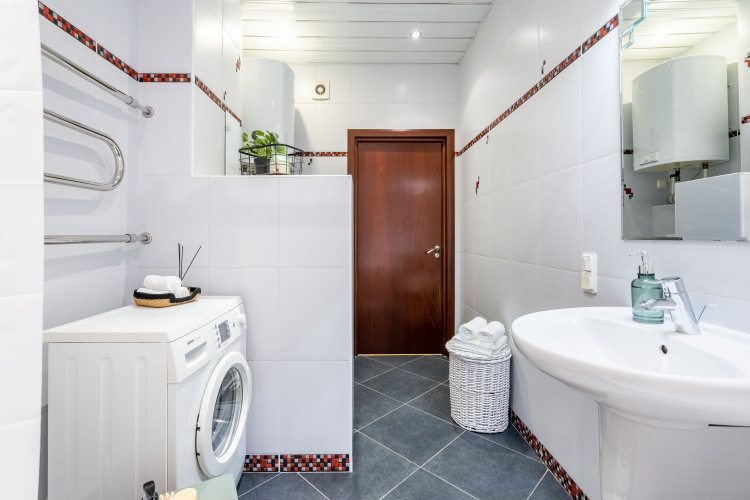 Предусмотрено размещение до 4 человек: в гостиной расположен раскладной диван 160х200см, в спальне — кровать 160х200см. Постельное бельё и полотенца предоставляются на каждого гостя. В распоряжении гостей: телевизор, стиральная машина, посудомоечная машина, микроволновая печь, чайник, варочная панель, вытяжка и духовой шкаф, холодильник, утюг с гладильной доской, бесплатный доступ к сети Wi-Fi. В ванной комнате установлена ванна, есть водонагреватель и фен, предоставляются гель для душа, шампунь, бальзам, а также стиральный порошок.
