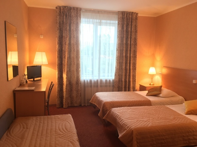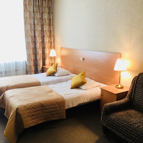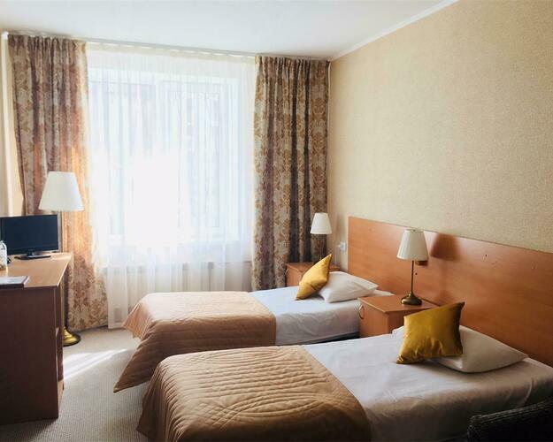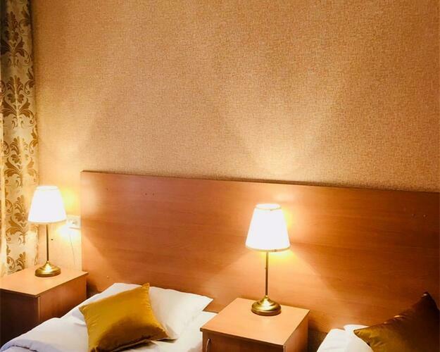 Улучшенная комната комфортной категории. Отличается необычайным шармом и эстетикой, очень уютная. Две односпальные кровати , диван, ж/к телевизор, чайник, чашки, занавески blackout. В комнате своя отдельная ванная комната и туалет.