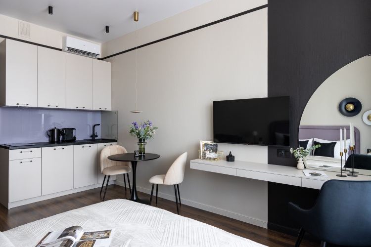 Апартаменты Merino Home Violet, адрес на карте Санкт-Петербург, Железнодорожный проспект, д.14/3, с характеристиками номеров и доступностью онлайн бронирования на ресурсе vashotel.ru , стоимость проживания и удобства.