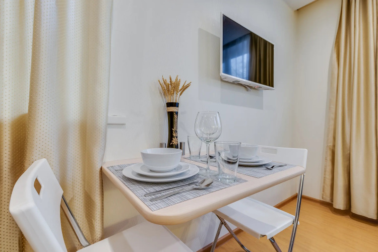 Также имеется телевизор, микроволновая печь, фен, электрический чайник, холодильник, электрическая плита, утюг с гладильной доской, бесплатный Wi-Fi. Перед каждым гостем апартаменты проходят уборку, подготавливается постельное белье и полотенца.