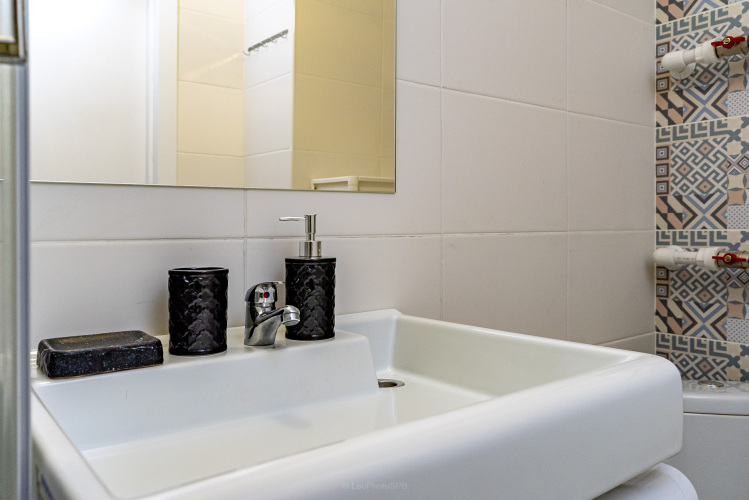 В апартаментах могут размещаться 1-2 гостя, имеется всё для проживания. Есть кровать с ортопедическим матрасом, шкаф и вешалка для вещей, обеденный стол, навесная тумба под ТВ и тумба-обувница. Гостям выдаётся постельное бельё и полотенца. В апартаментах есть шторы блэк-аут. Имеется бытовая техника: варочная панель, микроволновка и набор посуды и фильтр для воды, холодильник с морозилкой, посудомойка, телевизор со Smart TV, стиральная машина, фен, утюг. Работает бесплатный Wi-Fi.