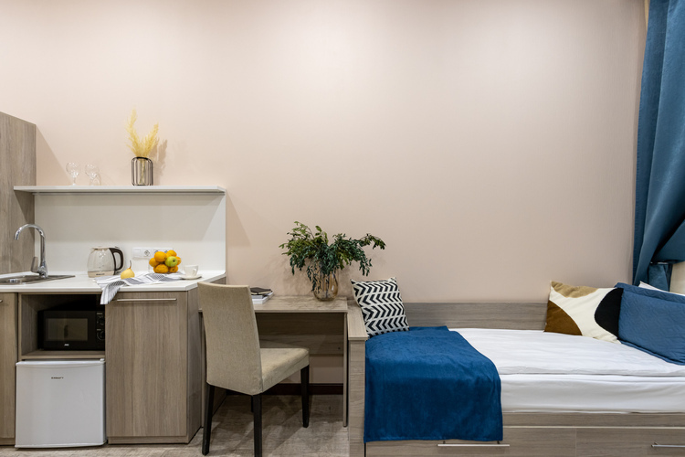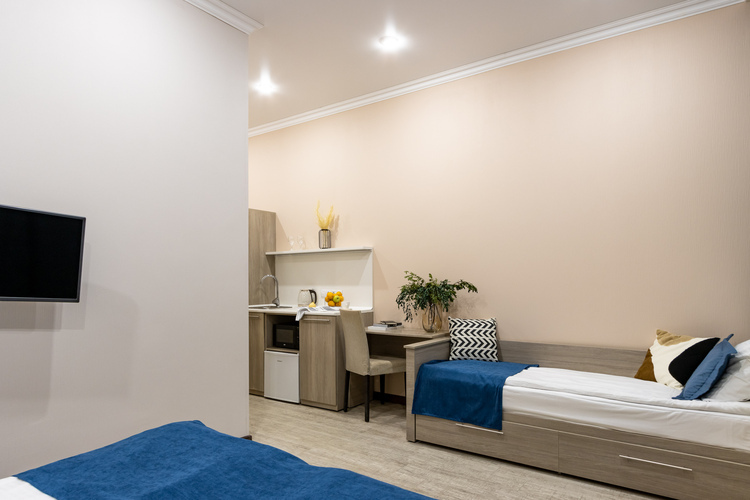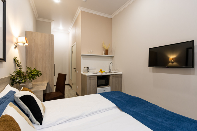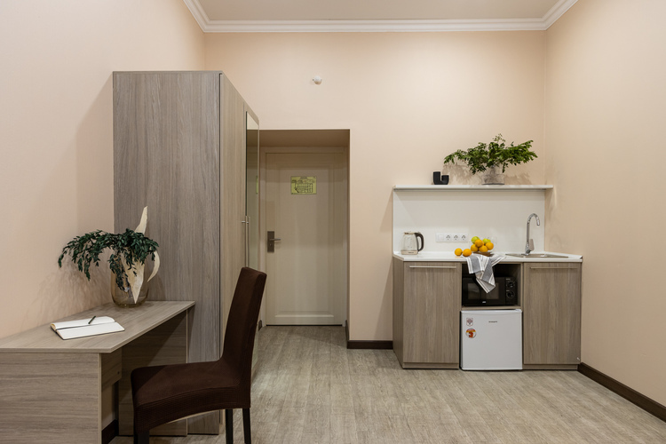 Каждый номер оформлен в стильном современном интерьере и предполагает размещение от 1 до 3 гостей.