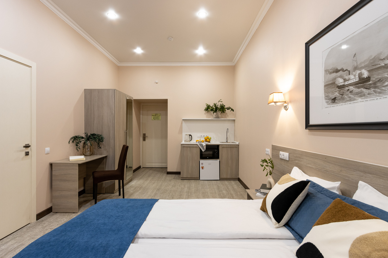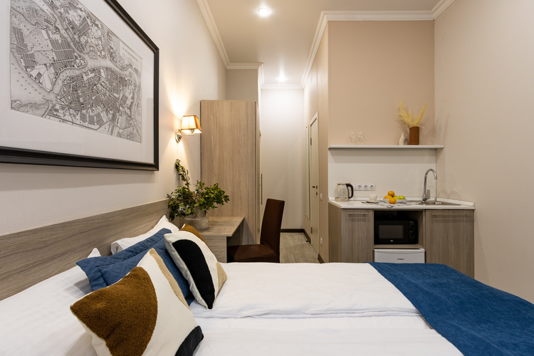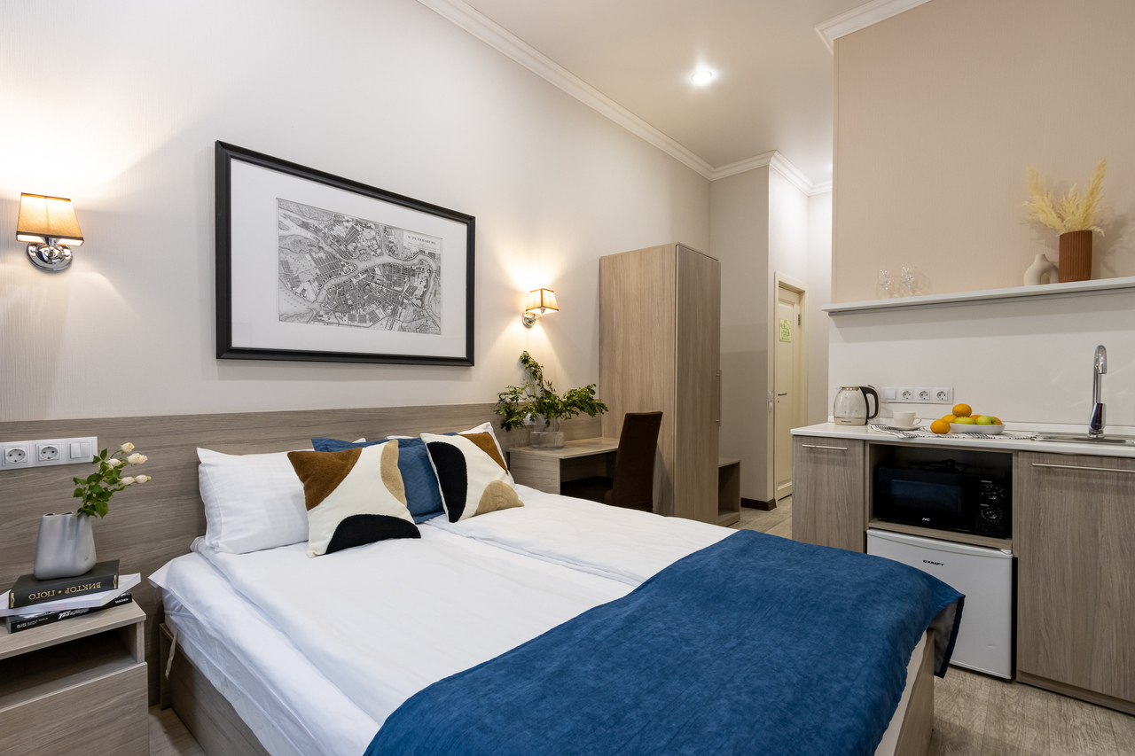 Уютный апарт-отель с кухней и современным интерьером для проживания 1-3 людей имеет уникальное расположение на переулке Пирогова. В пешей доступности от отеля: Исаакиевский собор, Адмиралтейство, Сенатская площадь, Медный всадник, набережные Невы, Мойки со знаменитыми петербургскими мостами, Канал Грибоедова, дворцы, музеи, театры, парки и модные общественные пространства.