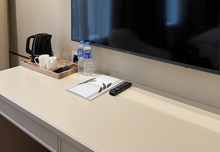 Небольшой, уютный номер выполнен в пастельных тонах, в отделке комнаты использовано натуральное дерево, а в ванной мрамор. К удобству гостей 4 USB розетки у изголовья кровати, подогреваемый пол в ванной комнате и белоснежное постельное белье из Италии. Вся вода, которая подается в отель, проходит 4 степени очистки, гости отдельно отмечают ее мягкость и комфортные ощущения после душа. По Вашему желанию есть возможность самостоятельно регулировать температуру воздуха в номере.