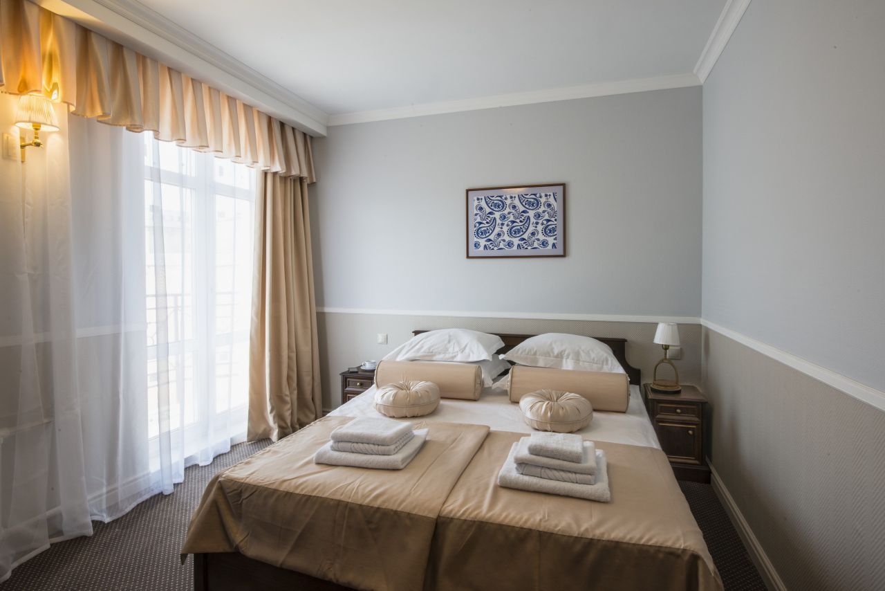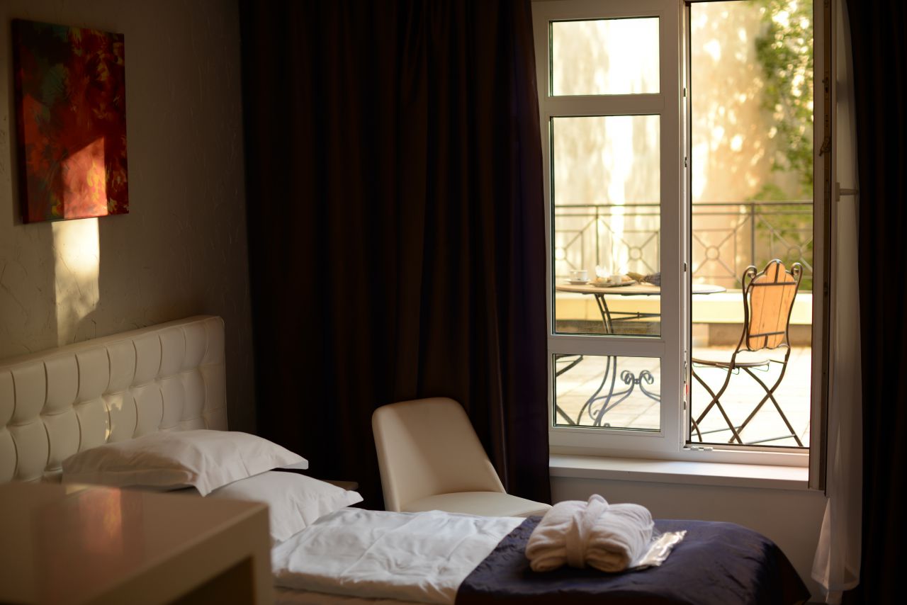 У отеля 50 номеров. Все номера обставлены массивной мебелью из иберийского ореха, кровати с ортопедическими матрасами и сатиновым постельным бельем. Номера выходят окнами на тихий сквер, а так же оснащены шумоизолирующими дверьми из массива дерева. Номера отеля имеют различный дизайн. В номерах LEDTV с плоским экраном, оборудовано программой на нескольких языках и возможностью заказа дополнительных услугах в номер. Номера оснащены системой кондиционирования четвертого поколения AdvancedFresh. Все ванные комнаты снабжены душевыми кабинами или ванной, феном, зеркалами и туалетными принадлежностями. Во всех номерах бесплатный Wi-Fi.