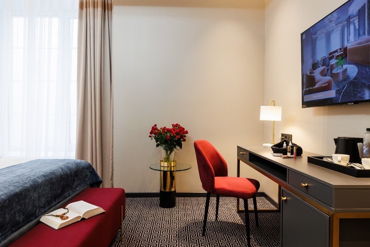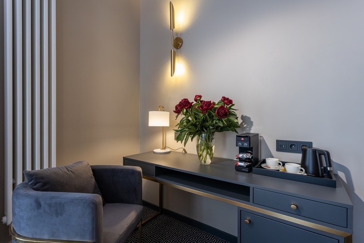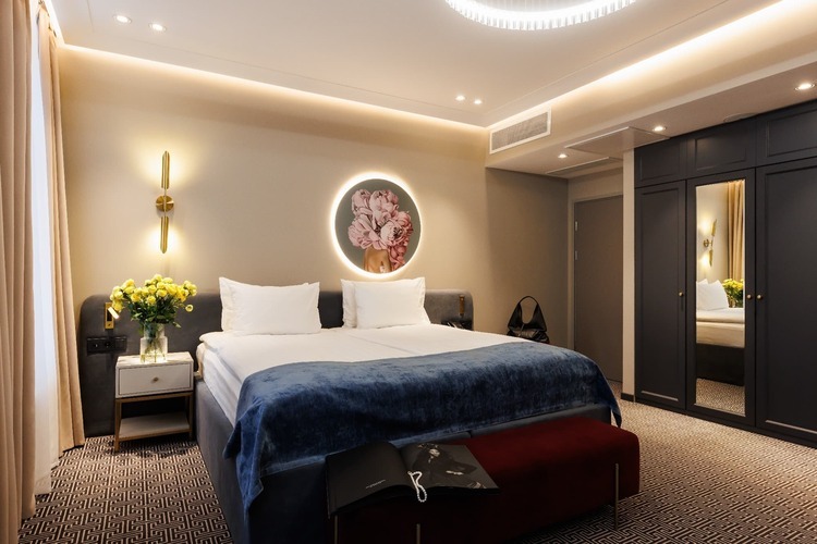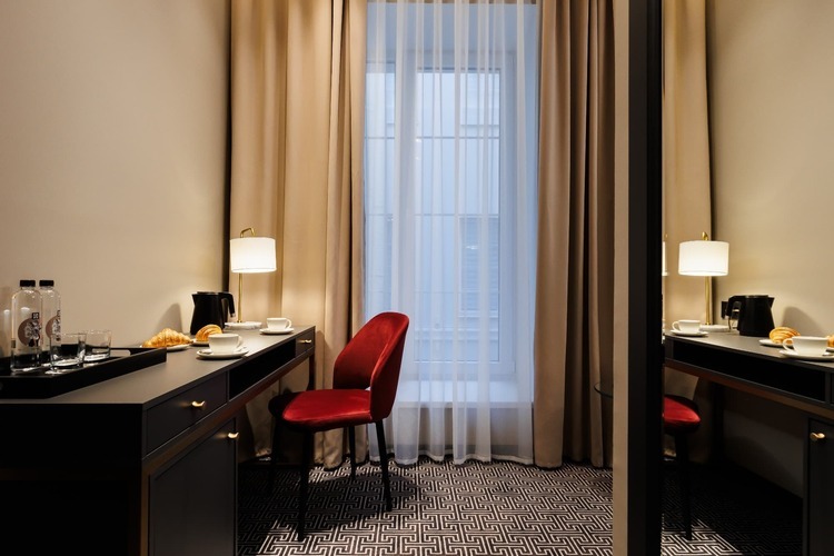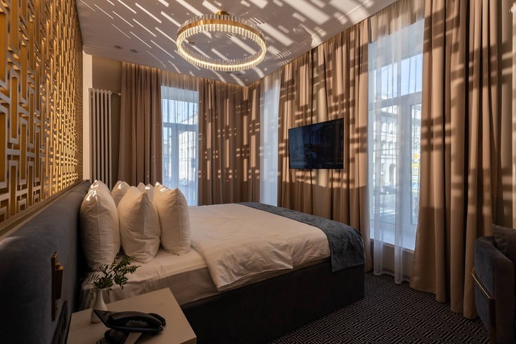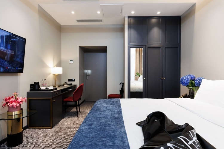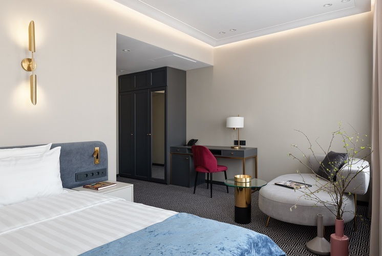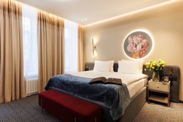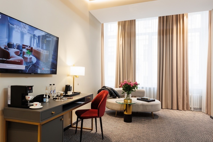 Коллекция эксклюзивных просторных номеров от 30 кв. м. с 1 большой кроватью (установка 2 отдельных не предусмотрена) и красивым видом на Большую Морскую и Гороховую улицы или в большой тихий двор. В числе удобств: капсульная кофемашина, гостиный уголок и вечерний сервис
