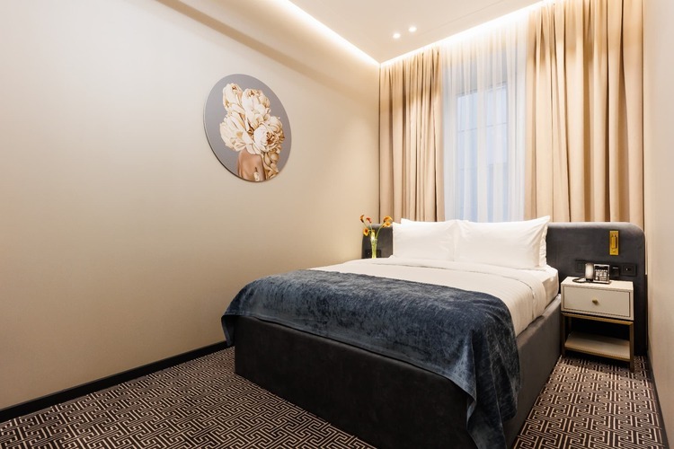 Классические номера от 18 кв. м с базовой комплектацией и 2 раздельными кроватями, которые по запросу гостей сдвигаются вместе. Окна выходят в большой внутренний двор, на оживленную Большую Морскую или Гороховую улицу.