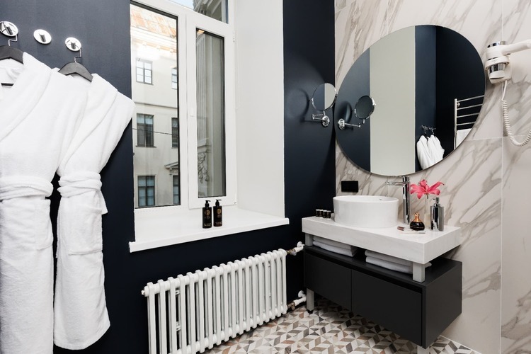 Комфортабельные номера от 22 кв. м с «изюминкой» в виде большого окна в ванной комнате. В Модернах установлены 2 раздельные кровати, которые по запросу гостей сдвигаются вместе. Окна выходят в большой внутренний двор или на оживленную Гороховую улицу.