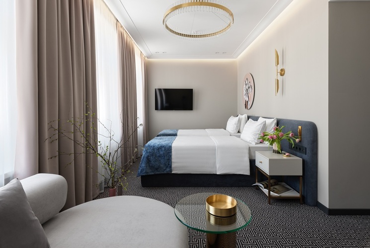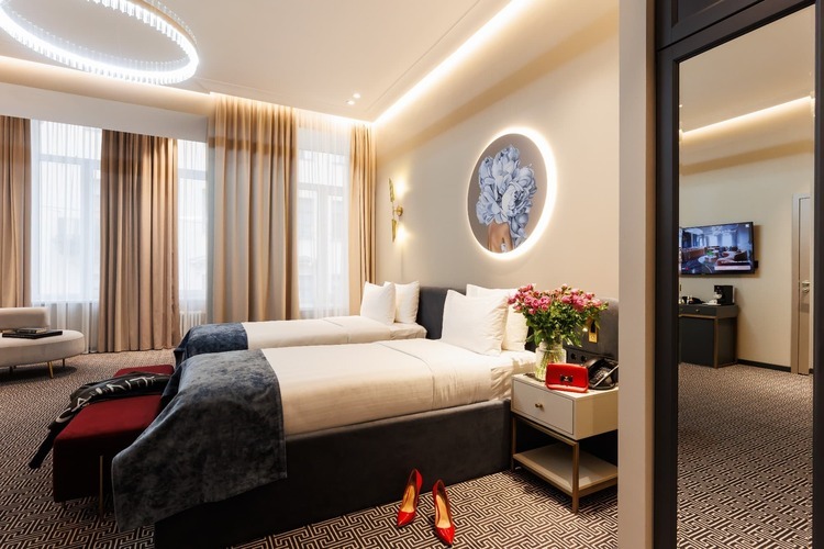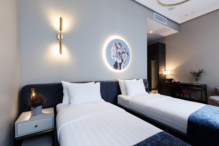 Коллекция эксклюзивных просторных номеров от 30 кв. м. с красивым видом на Большую Морскую и Гороховую улицы или в большой тихий двор. В числе удобств: капсульная кофемашина, гостиный уголок и вечерний сервис. Установлены 2 раздельные кровати, которые по запросу гостей сдвигаются вместе.