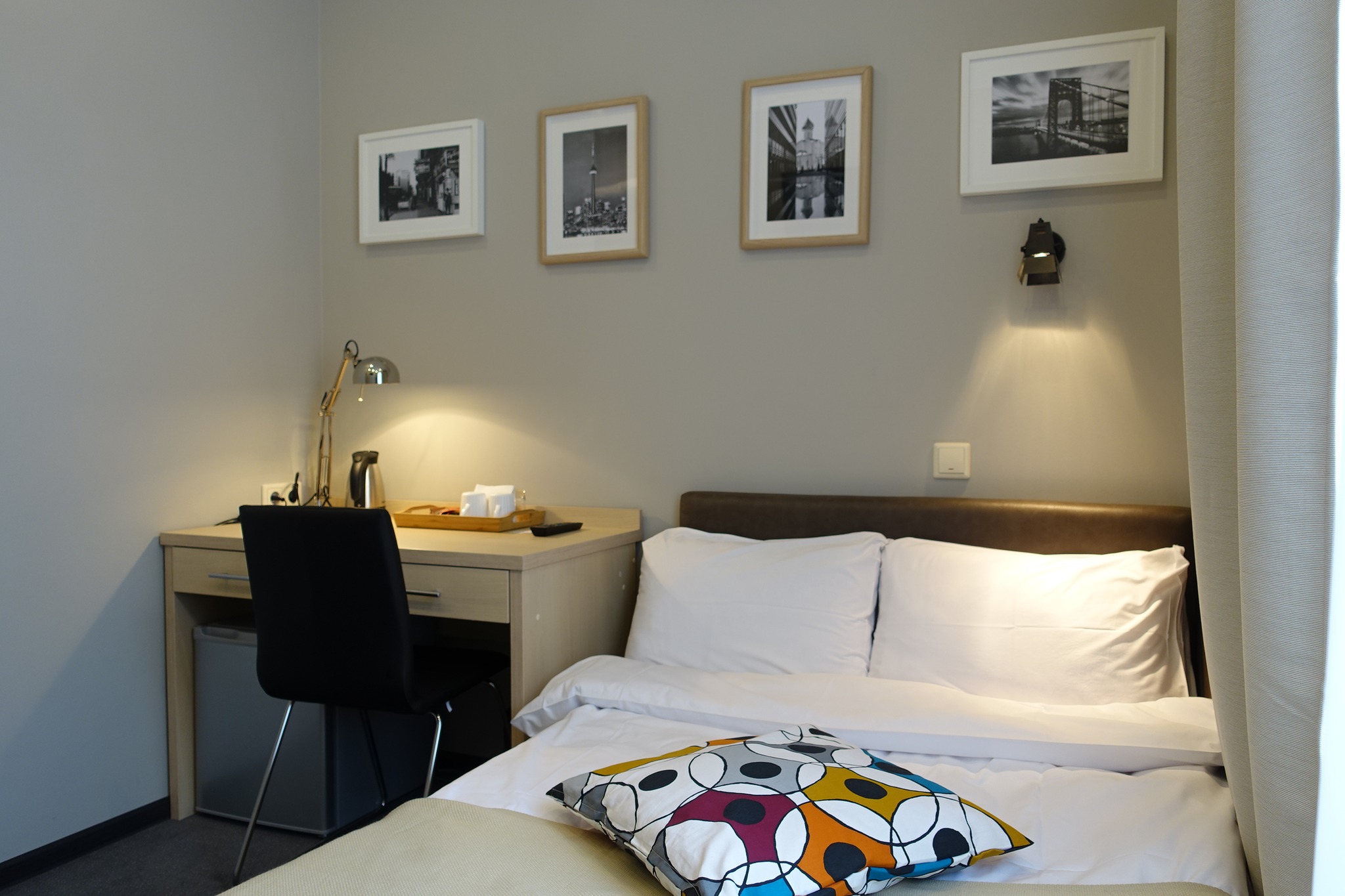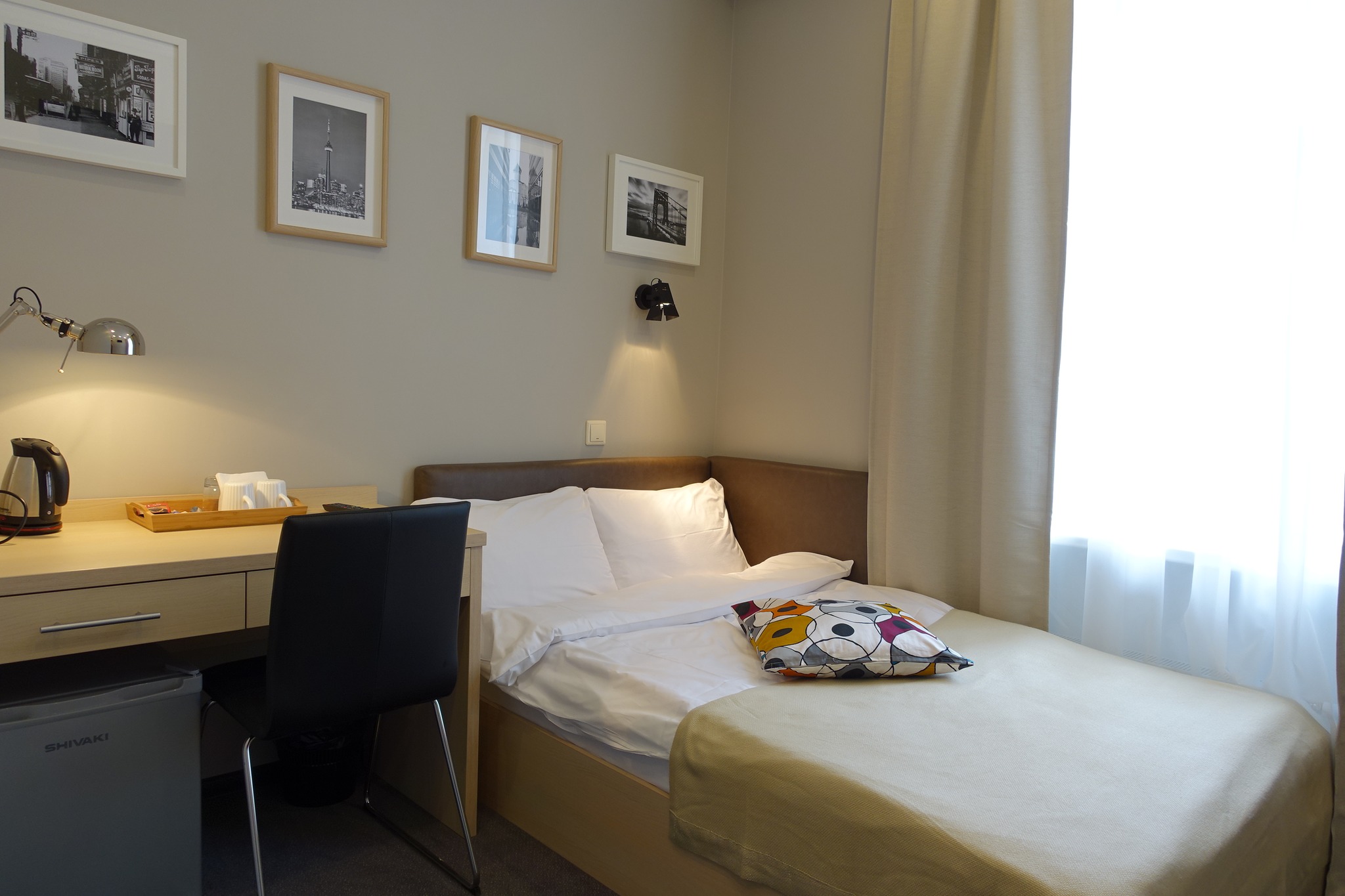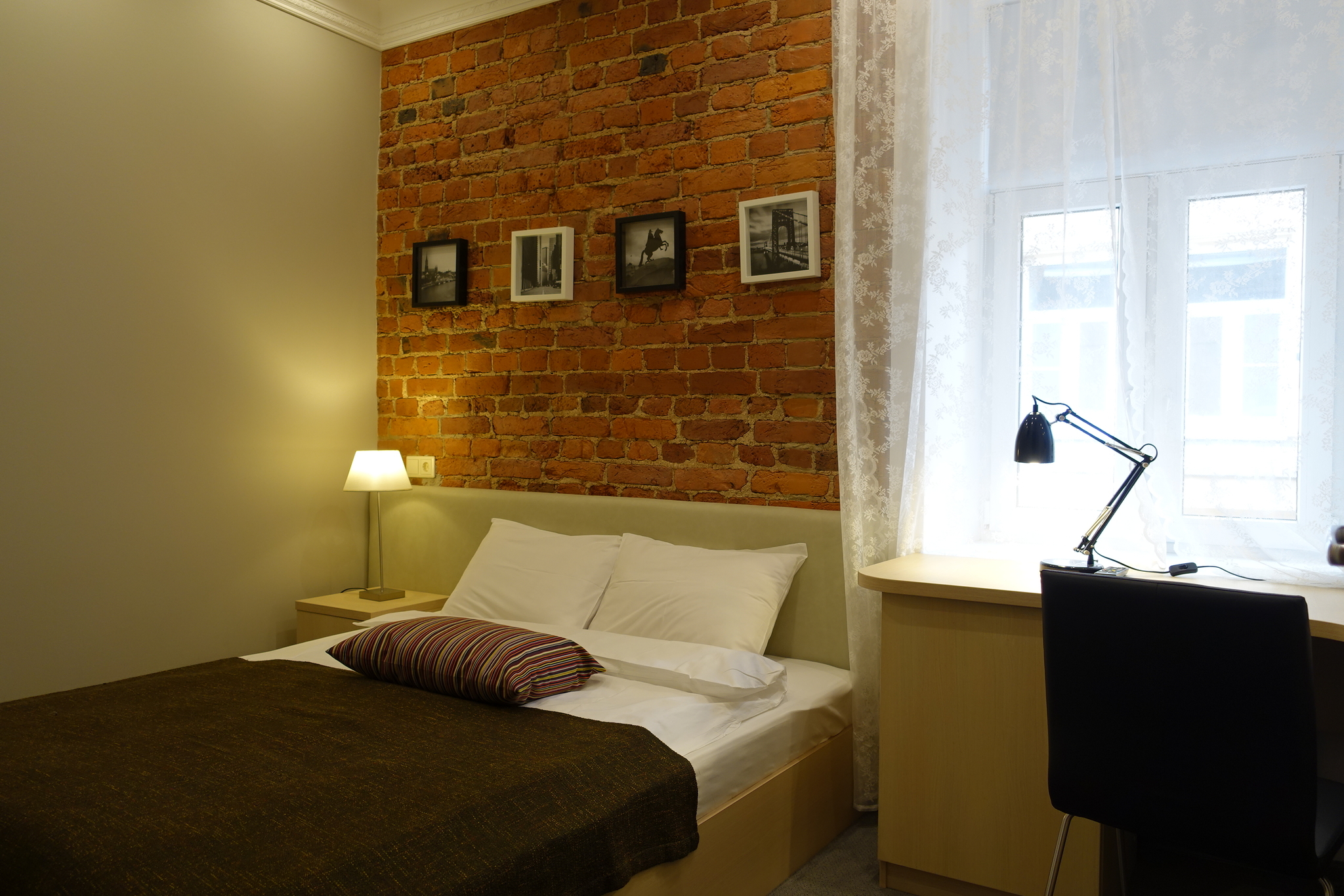 Небольшой, уютный и светлый номер с видом на тихий двор прекрасно оснащен всем необходимым для одного путешественника. Площадь ~ 12 м2 Жилая площадь ~ 10 м2 Завтрак включен Все номера для некурящих