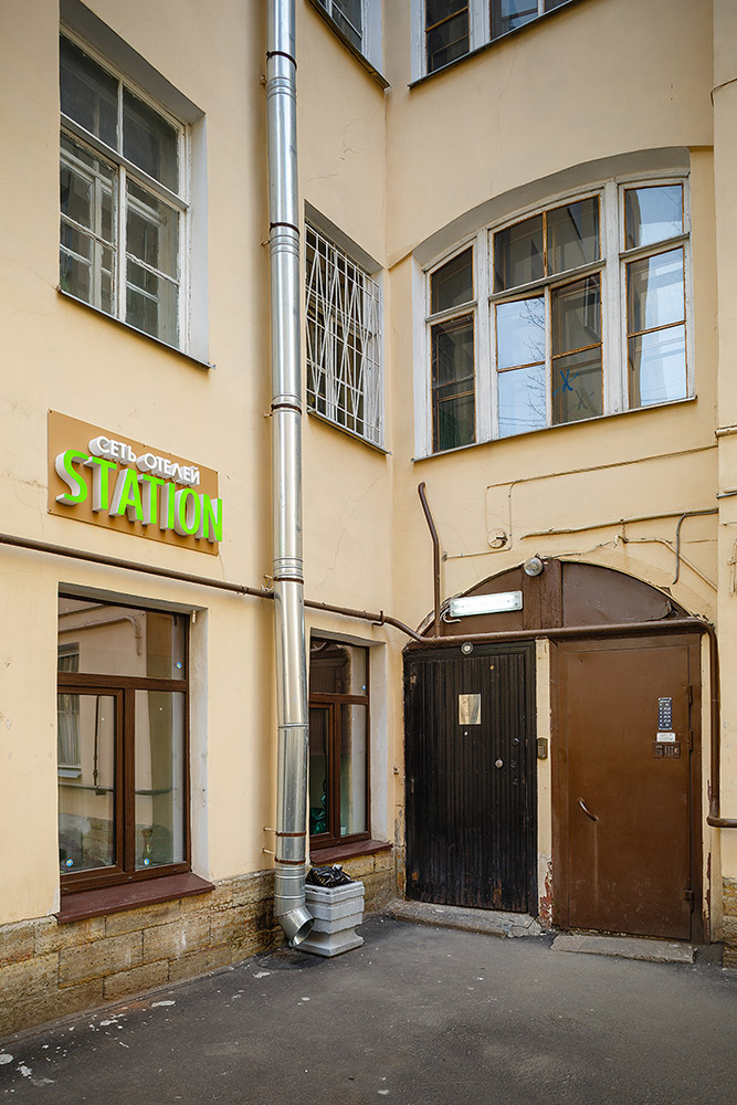 От станции "Московская" необходимо добраться до станции "Технологический институт" (пять остановок) и пересесть на другую ветку до станции "Пушкинская" (одна остановка). От выхода станции из метро необходимо двигаться направо по Загородному проспекту до пересечения с улицей Гороховая (150 метров) и повернув налево пройти до дома №73 (100 метров). Отель находиться во дворе дома, вход в арку дома №73, рядом с вывеской отеля. Справа от ворот рядом с табличкой имеется кнопка домофона, в который необходимо позвонить. Дверь в помещение отеля находится в глубине двора рядом с баннером "Station Hotels".
