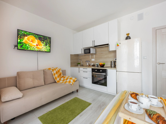 Удобно для гостей с ограниченными возможностями: на верхние этажи гостей поднимает лифт. Сотрудники апартаментов поддержат беседу на русском.