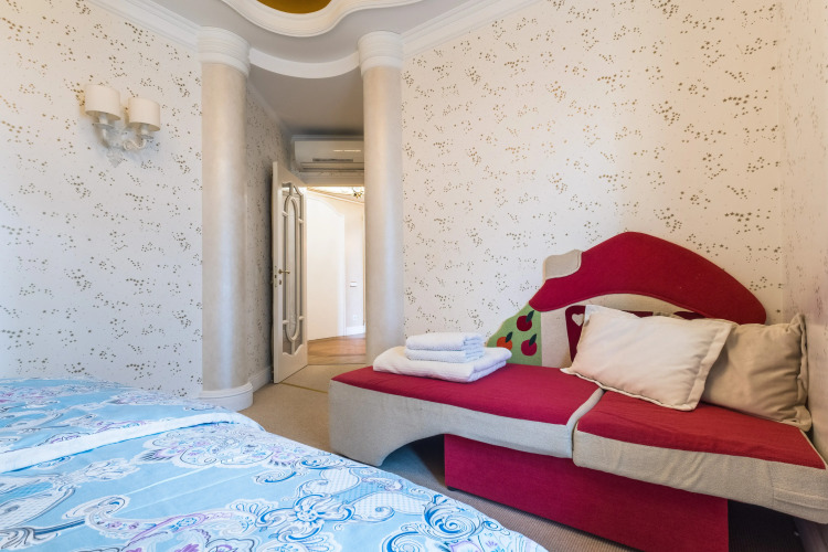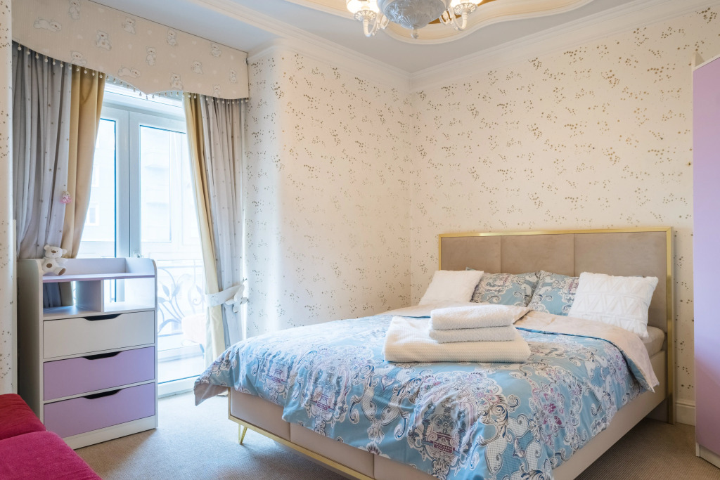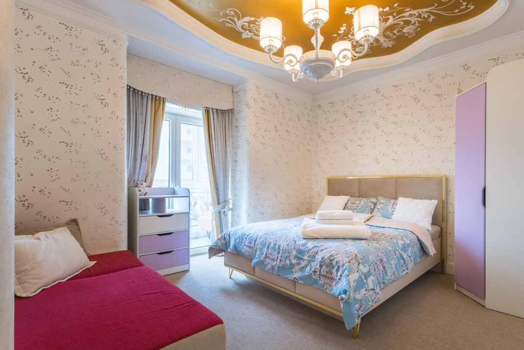 Гостям предлагается квартира с дизайнерским оформлением, двумя раздельными комнатами и гардеробной. В распоряжении гостей двуспальный диван-кровать, двуспальная кровать, шкаф, подогреваемый пол, джакузи. Предоставляются постельное бельё, полотенца, и туалетные принадлежности, шампуни, кондиционер, жидкое мыло, гель для душа.