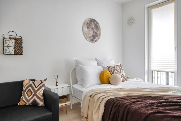 В квартире предлагаются постельное бельё, профессиональный клининг, посуда, техника, средства гигиены, приветственный набор продуктов. В квартире есть двуспальная кровать с ортопедическим матрасом 160х200, диван двуспальный 140х200, питьевой фильтр, холодильник, варочная панель, микроволновая печь, чайник, посуда, Wi-Fi, Smart TV, балкон с лаундж зоной, стиральная машина, водонагреватель, фен, утюг, гладильная доска, сушилка для одежды, шкаф.