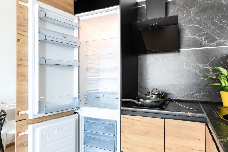 В апартаментах, площадью 27 кв.м., к услугам гостей предоставляется: двуспальная кровать с ортопедическим матрасом 160Х200, постельное бельё, полотенца, средства для душа и гигиены, фен и утюг, сушилку для белья, а также микроволновая печь, электрическая плита, холодильник, стиральная машина, вентилятор, посудомоечная машина. На кухне имеется посуда для сервировки и приготовления пищи.