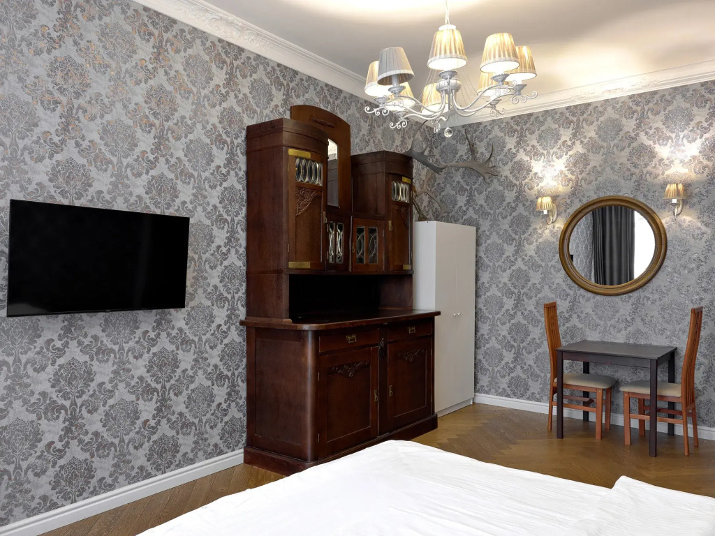 В номере гостей ждут телевизор. Оснащение зависит от выбранной категории номера.