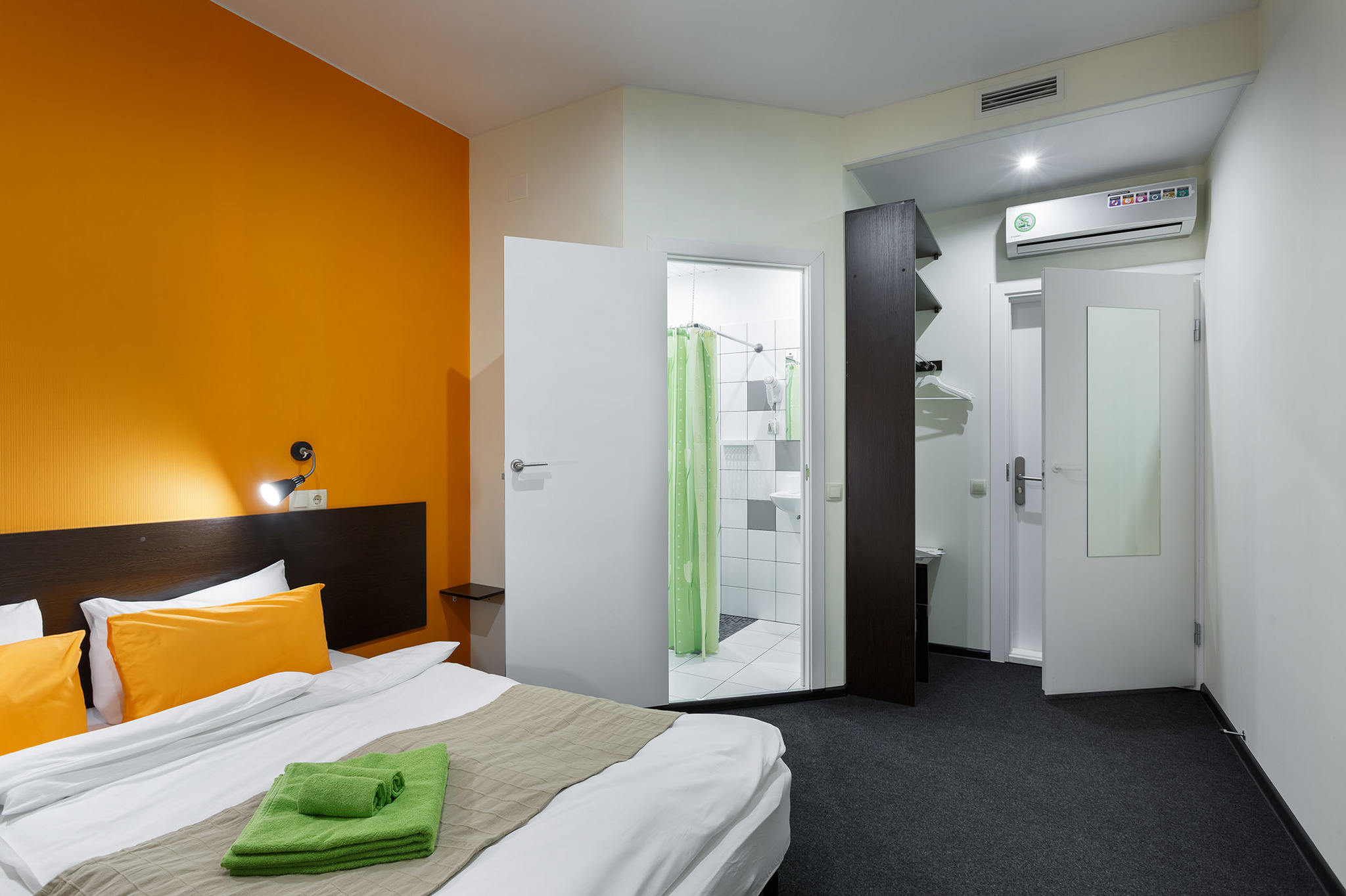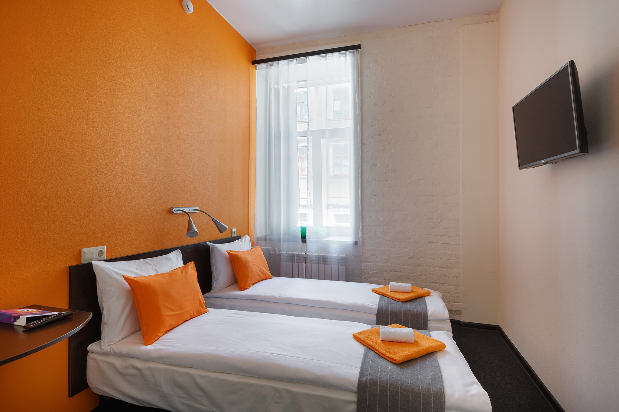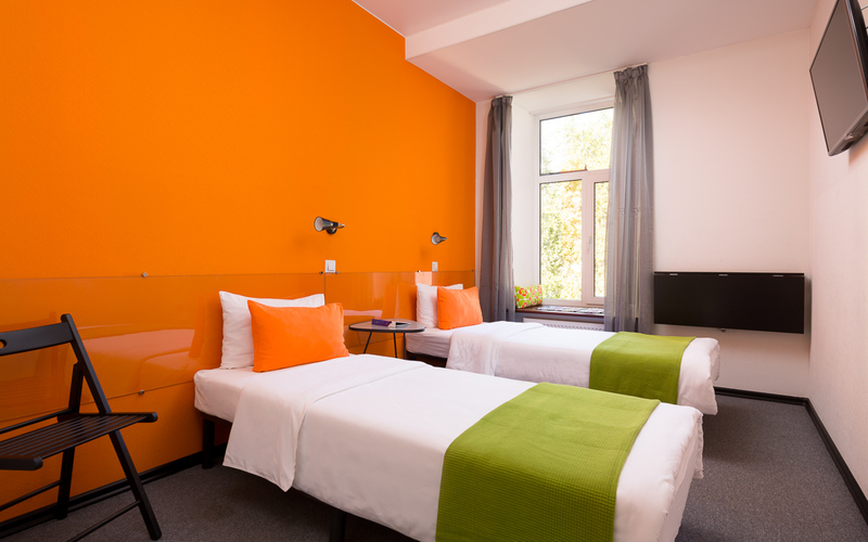 Двухместный номер с повышенной звукоизоляцией. В номере нет окна, за счет чего в номере хорошая звукоизоляция. Для гостей предусмотрен кондиционер в номере. Комната оформлена в современном и ярком стиле, в соответствии со стандартами сети отелей Станция. В номере для гостей 2 кровати или 1 двуспальная, телефон, телевизор, собственная ванная комната, туалетные принадлежности.