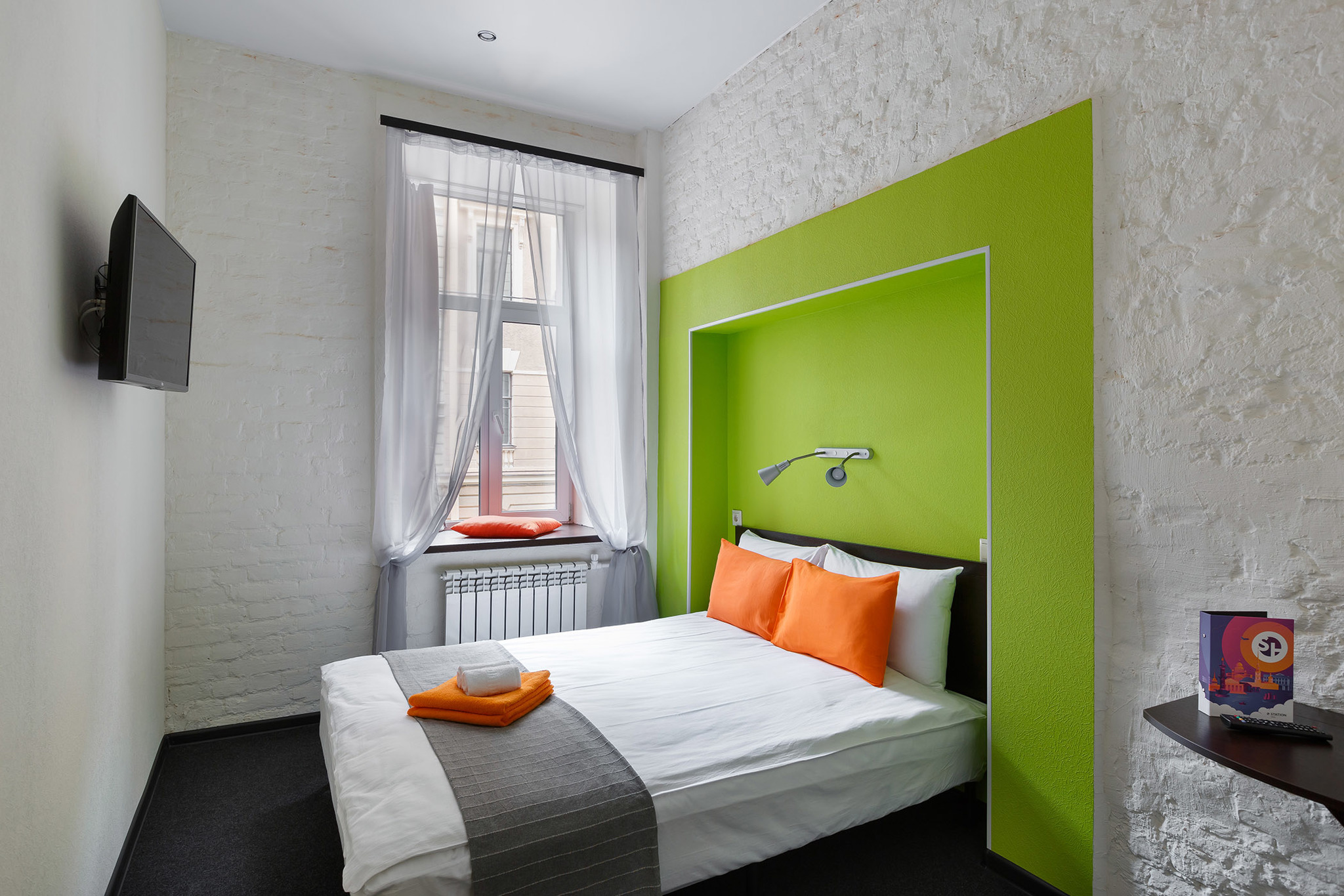 Двухместный стандартный номер с 1 или 2 кроватями. Номер оформлен в уникальном ярком силе сети отелей Станция. Оснащен телевизором с плоским экраном, телефоном. В номере собственная ванная комната, с феном и туалетными принадлежностями. Вид из окна открывается на город.