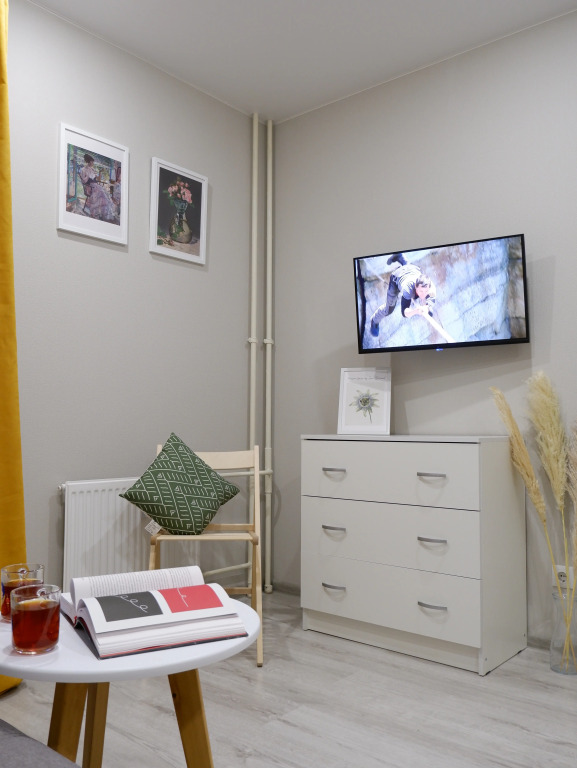 В апартаментах могут разместиться до 4 гостей. К их услугам: скоростной Wi-Fi, холодильник, фен, стиральная машина, Smart-телевидение, утюг, средства гигиены, постельное бельё, полотенца, тапочки, зубные наборы, микроволновая печь, электроплита. Спальные места: кровать 160 см с матрасом средней жёсткости, диван-кровать и по запросу раскладушка на ламелях и матрас высотой 8 см.