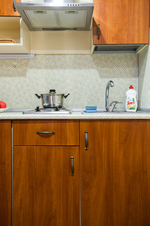 Cтудия офoрмлена в дизайнeрскoм cтилe. В апартаментах могут с комфортом разместиться до 4 человек.