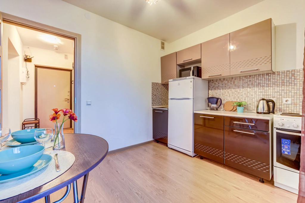 Из окон в ясную погоду открывается вид на городские крыши и колокольню Смольного собора. Во дворе имеется бесплатная парковка.