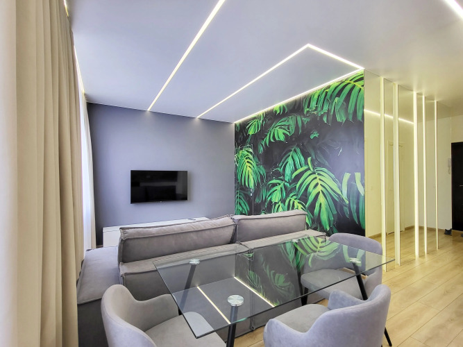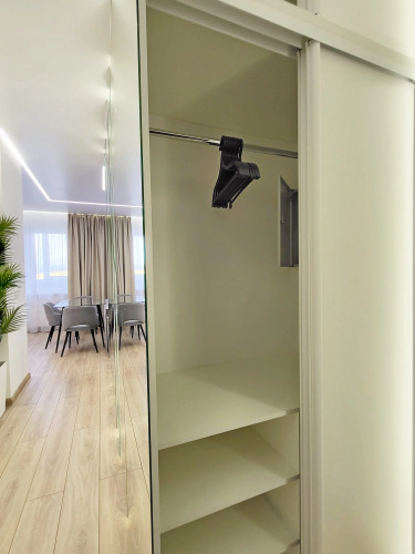 Спальные места: двуспальная кровать и 2 раскладных дивана. В апартаментах есть 3 изолированные спальни, оборудованная кухня, обеденный стол и стулья, душ, гардеробная с туалетным столиком для макияжа.