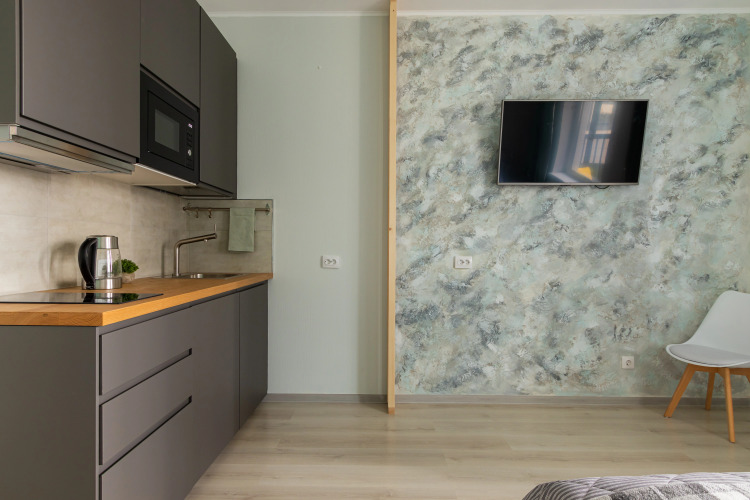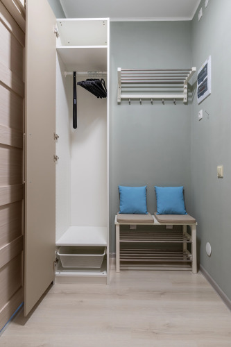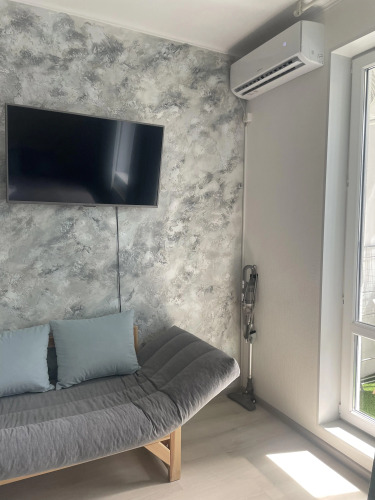 Гостям доступны 3 спальных места, включая двуспальную кровать и дополнительное место на раскладном диване. Предоставляется постельное бельё. Смена белья — 1 раз в неделю. Имеются блэкаут-шторы. В ванной комнате есть душевая кабина, предоставляется комплект полотенец на каждого гостя. Доступны: стиральная машина, бытовая химия, стиральный порошок, фен, туалетная бумага, жидкое мыло, гель для душа, шампунь. Есть бойлер на случай отключения горячей воды. На кухне: необходимая посуда для приготовления пищи, набор специй, растительное масло, соль, перец, сахар, холодильник, СВЧ. Дополнительные удобства: телевизор, интернет, утюг, гладильная доска, сушилка, кондиционер.