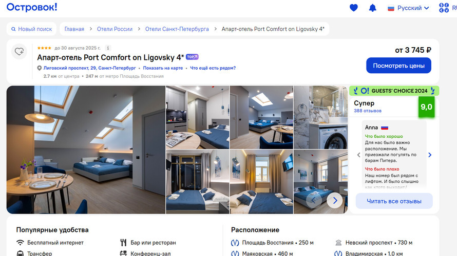 , цены проживания и удобства.