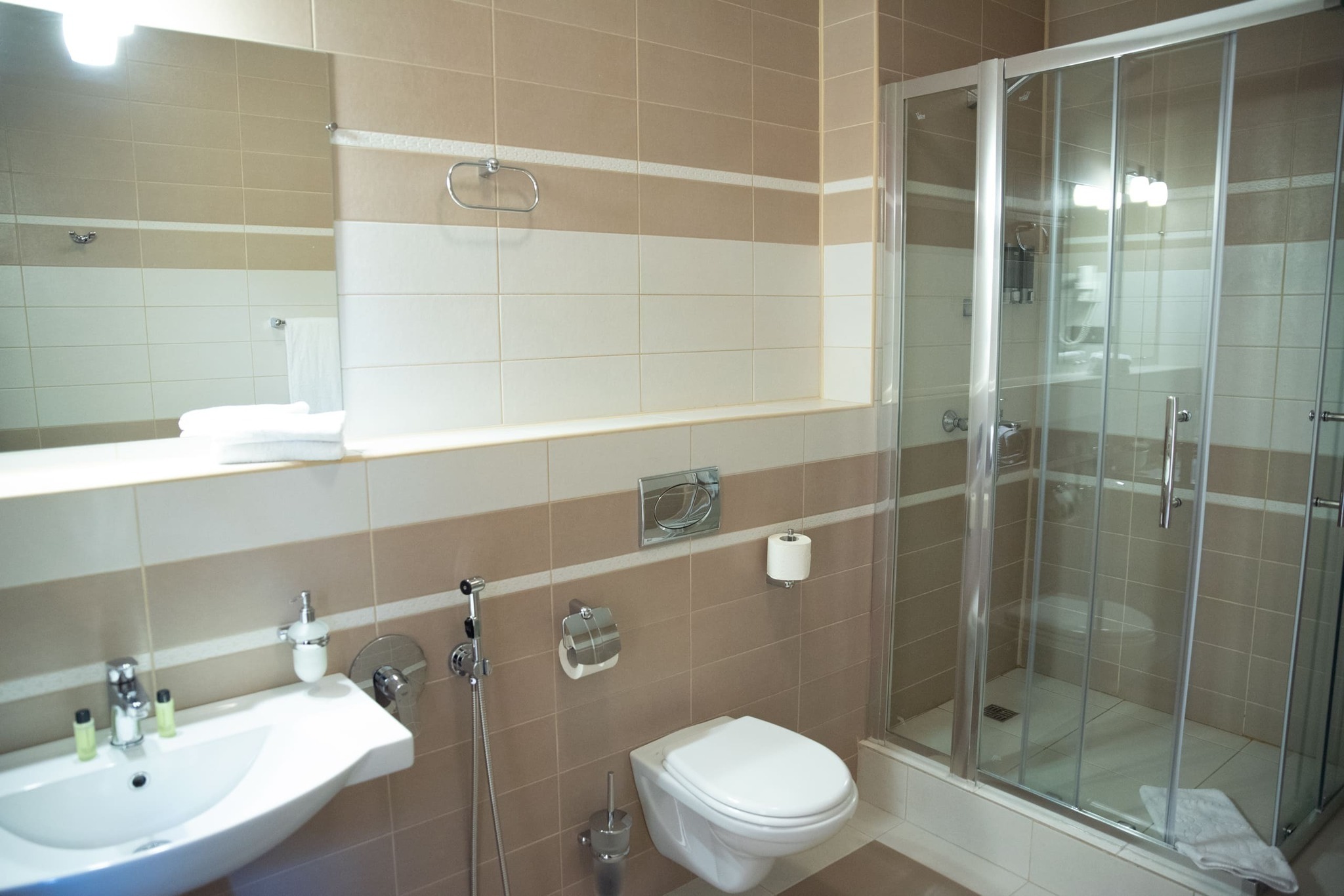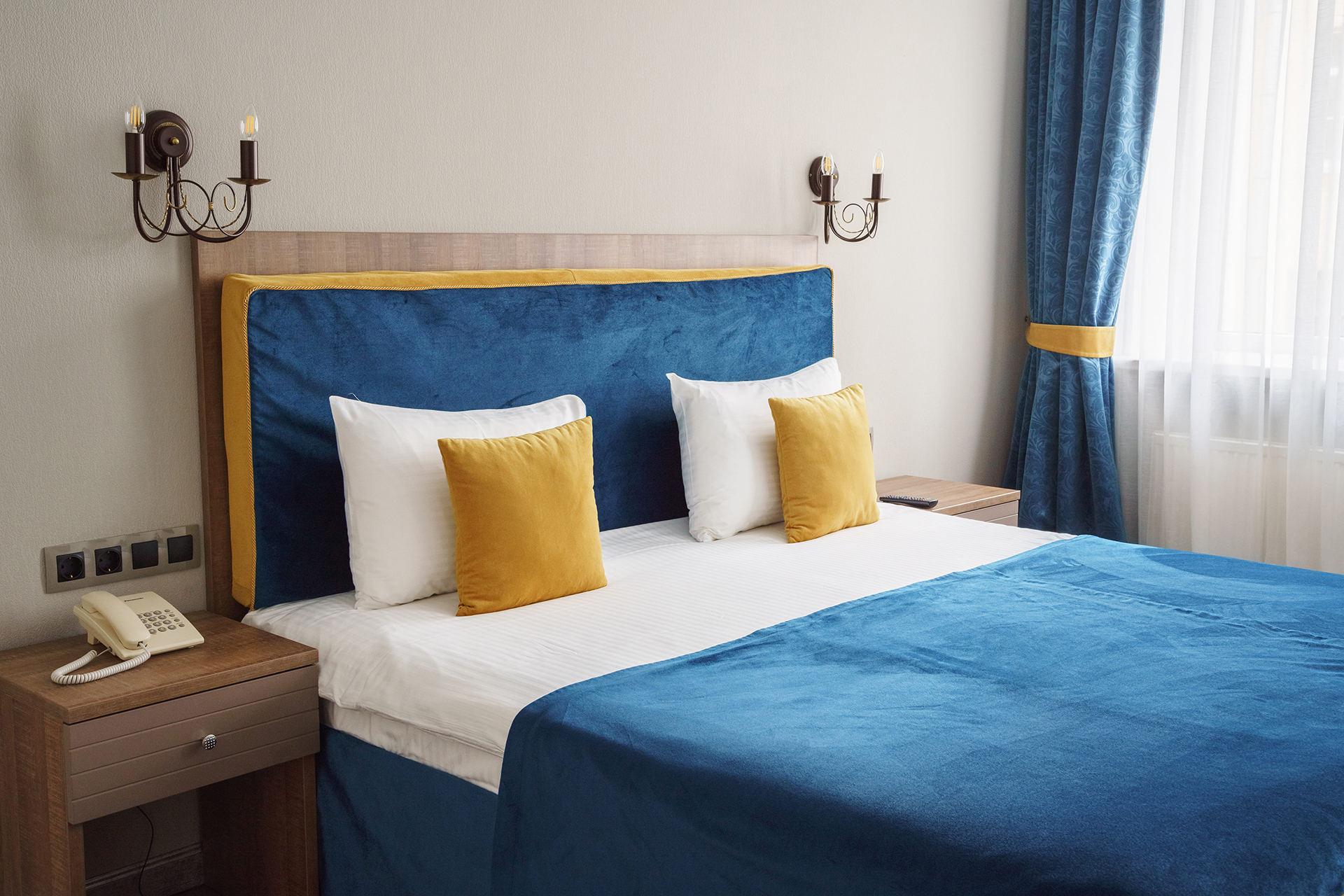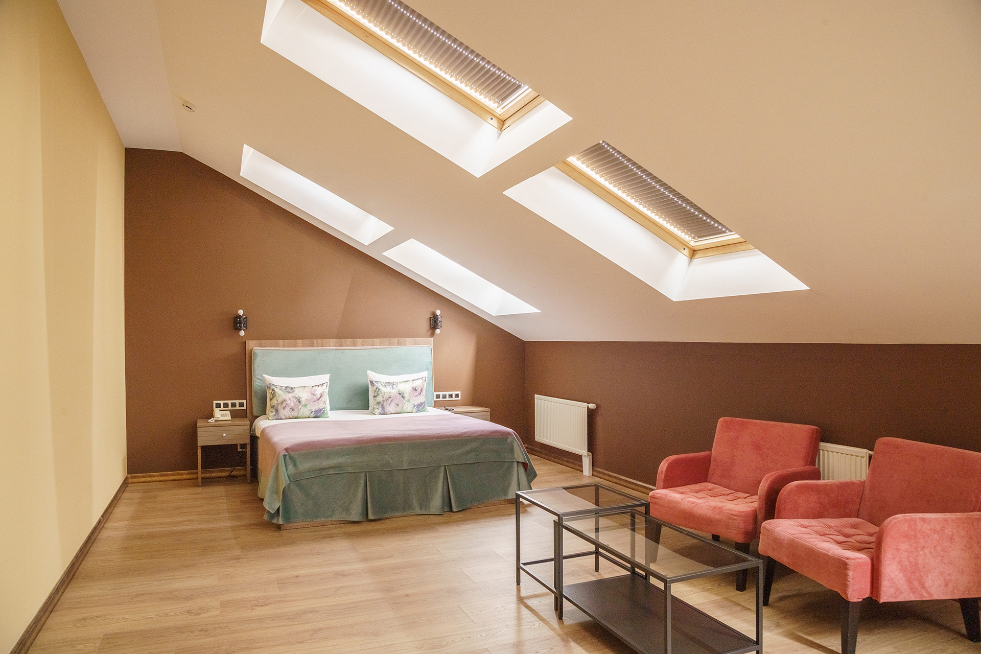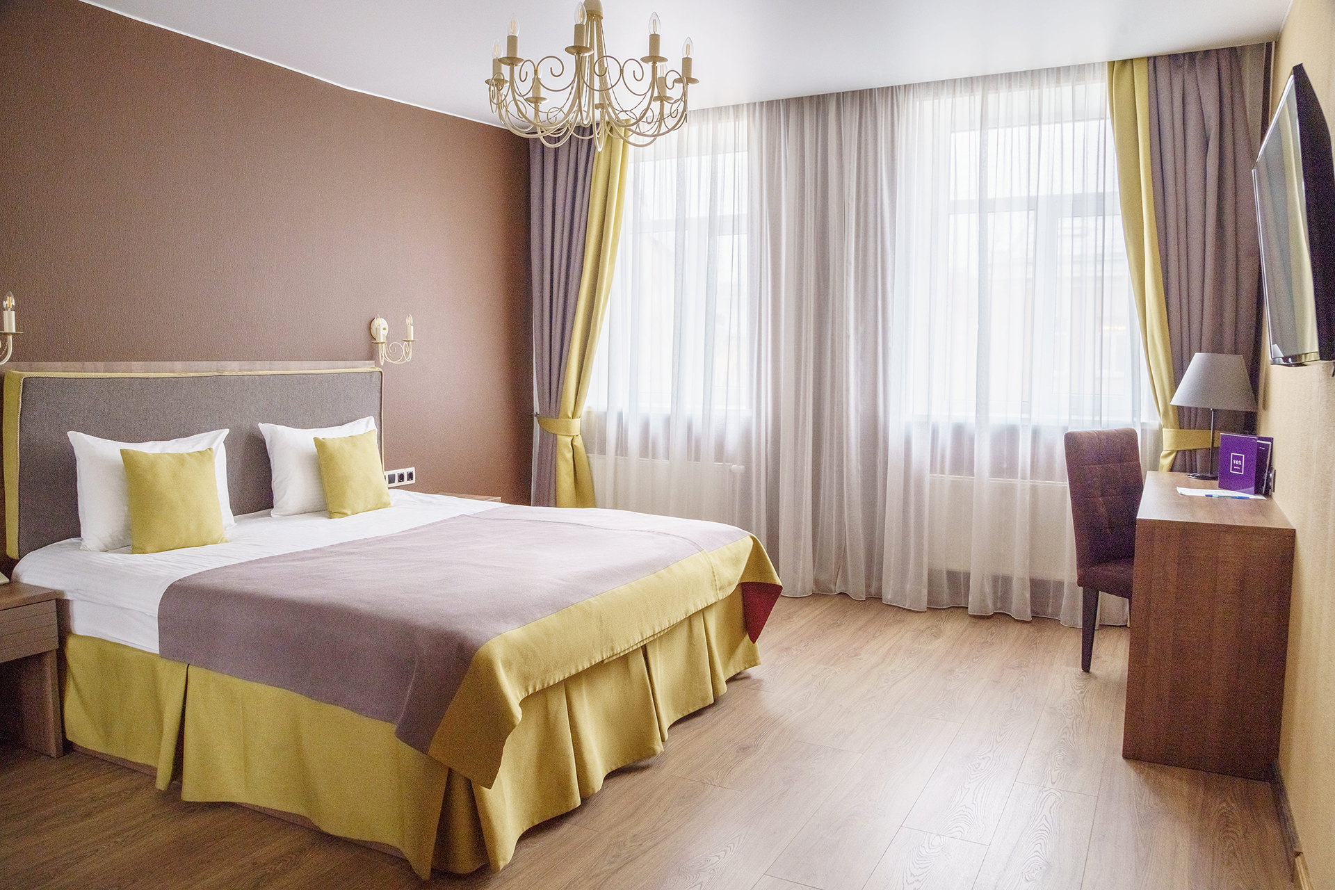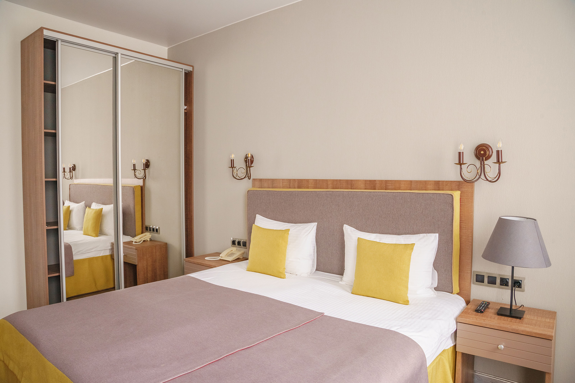 Всего представлено 77 номеров четырёх категорий. В каждом номере: современная мебель, телевизор с плоским экраном, спутниковое TV, бесплатный Wi-Fi, кондиционер, ванная комната с современной сантехникой и душевой кабиной, фен, туалетные принадлежности.
