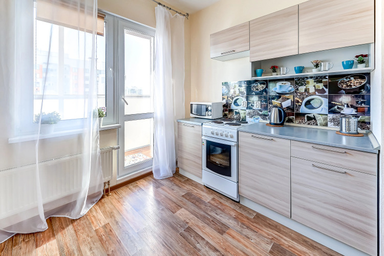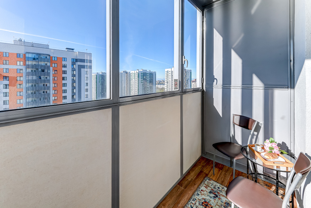 Однокомнатная квартира находится на 21-м этаже, с лоджии открывается вид на озеро и парк. В квартире есть всё для комфортного проживания.
