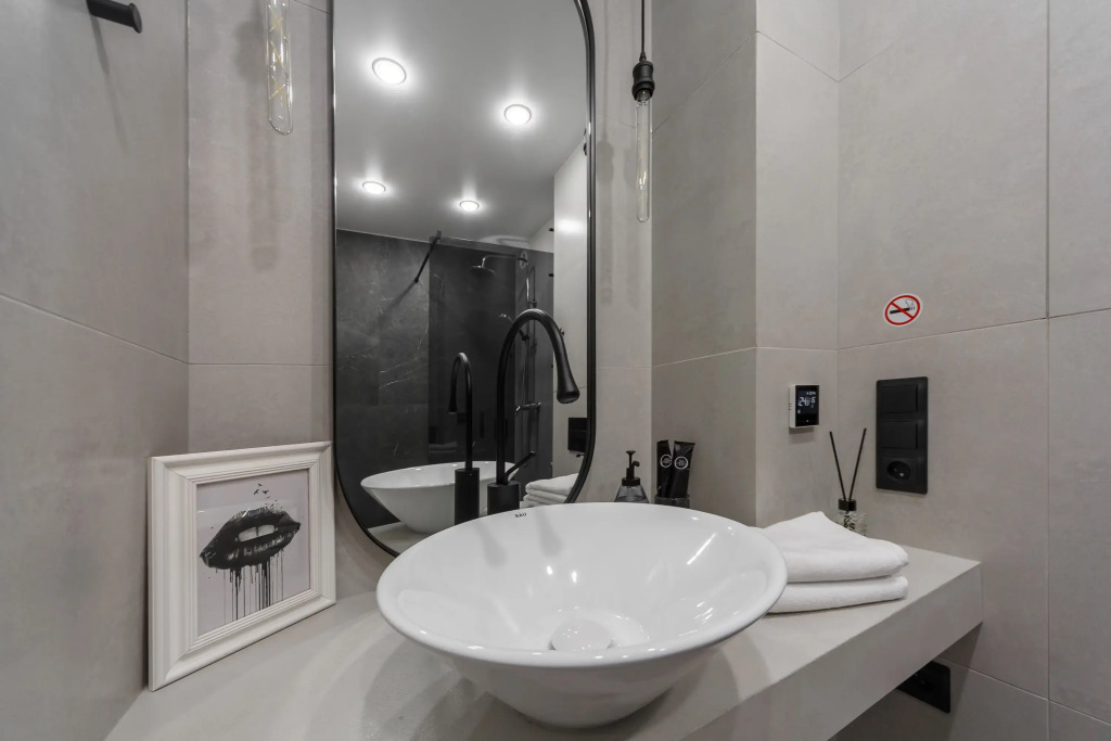 В ванной комнате есть необходимое, предоставляются средства личной гигиены: шампунь, гель для душа, бальзам для волос. В наличии душевой отсек, зеркало с подсветкой.