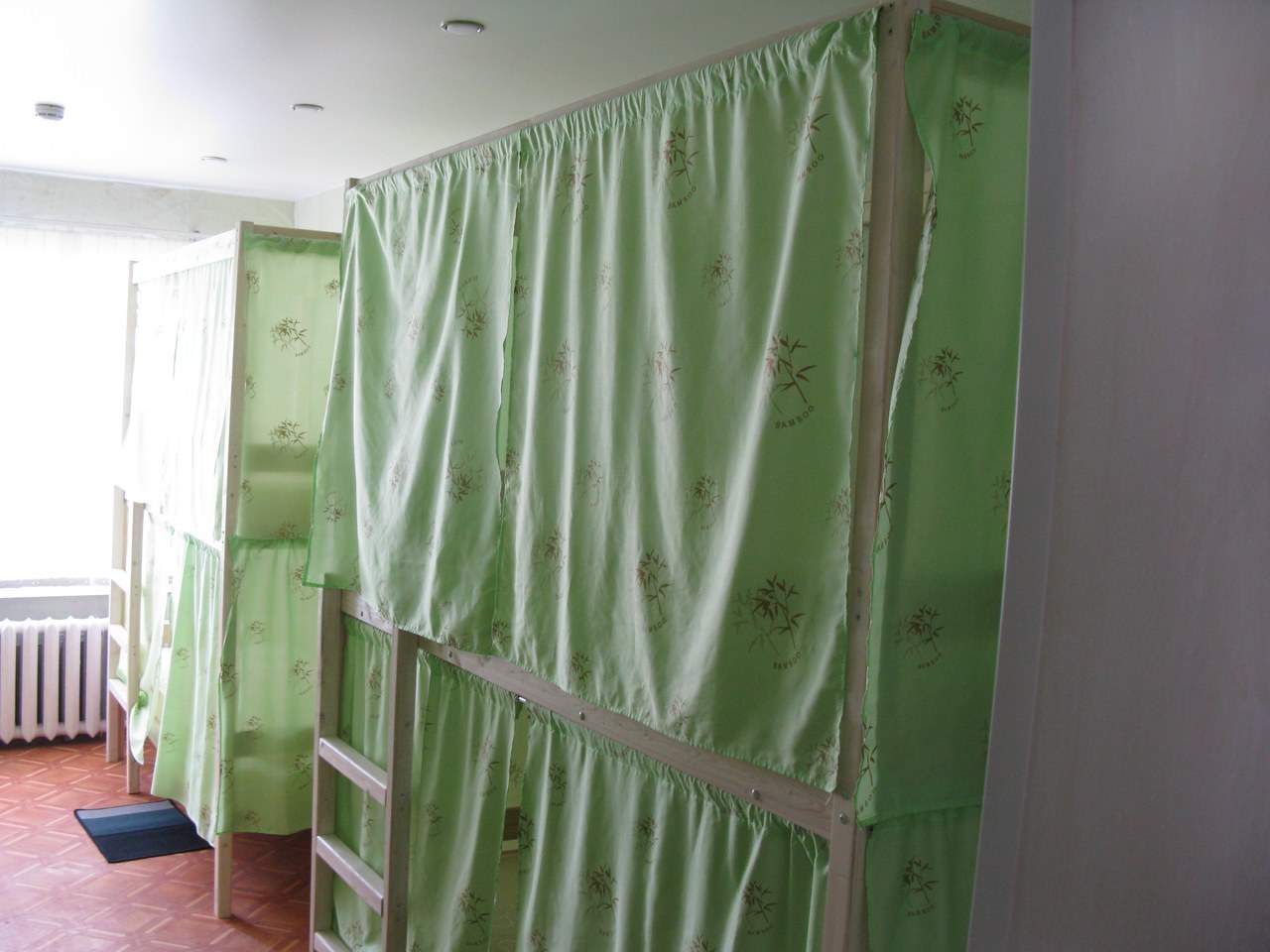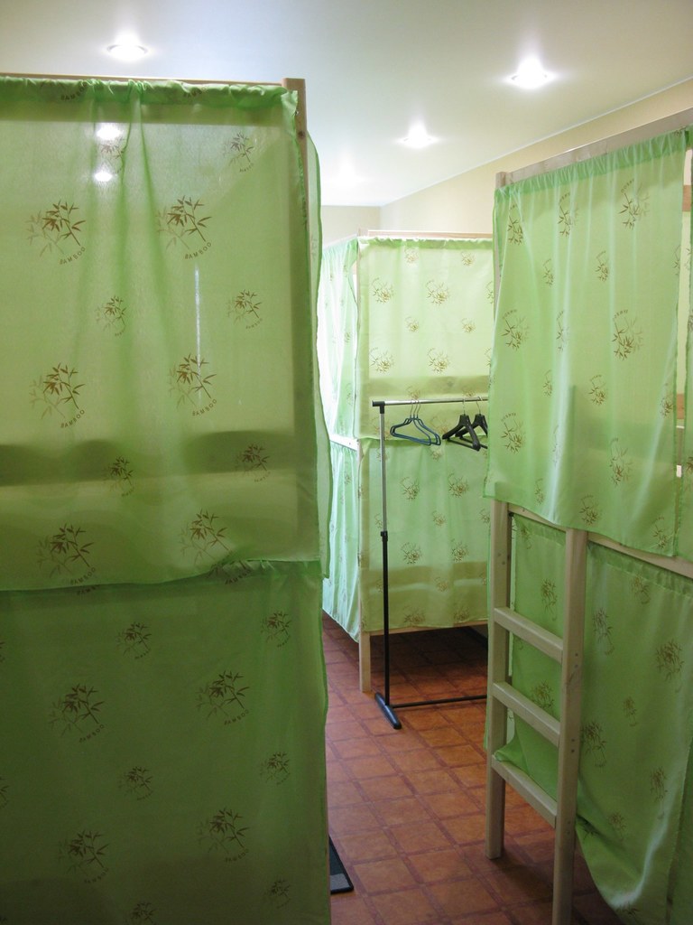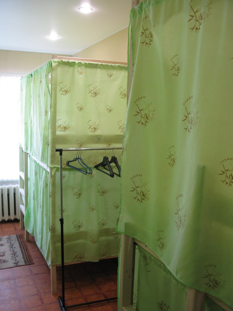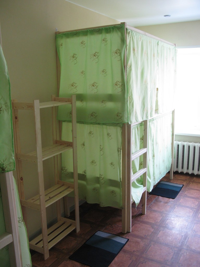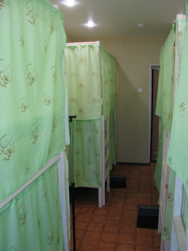 Четырехэтажное здание, хостел на 4 этаже, вход свободный до вечера, также есть кнопка для звонка администратору.