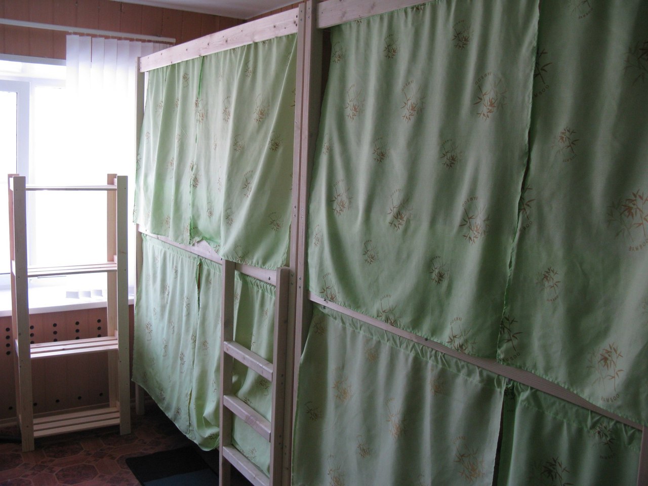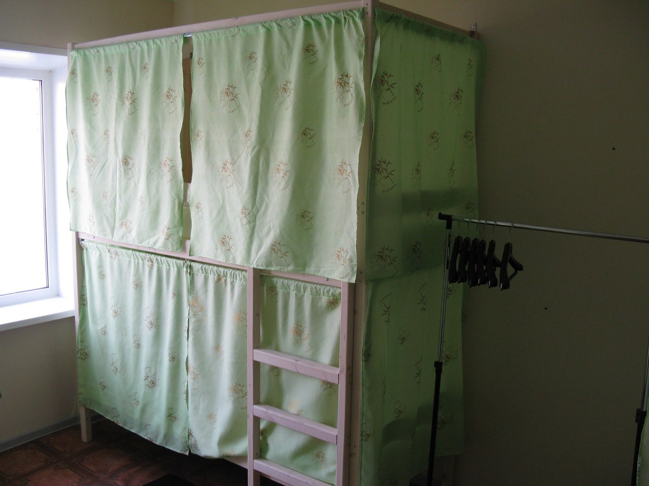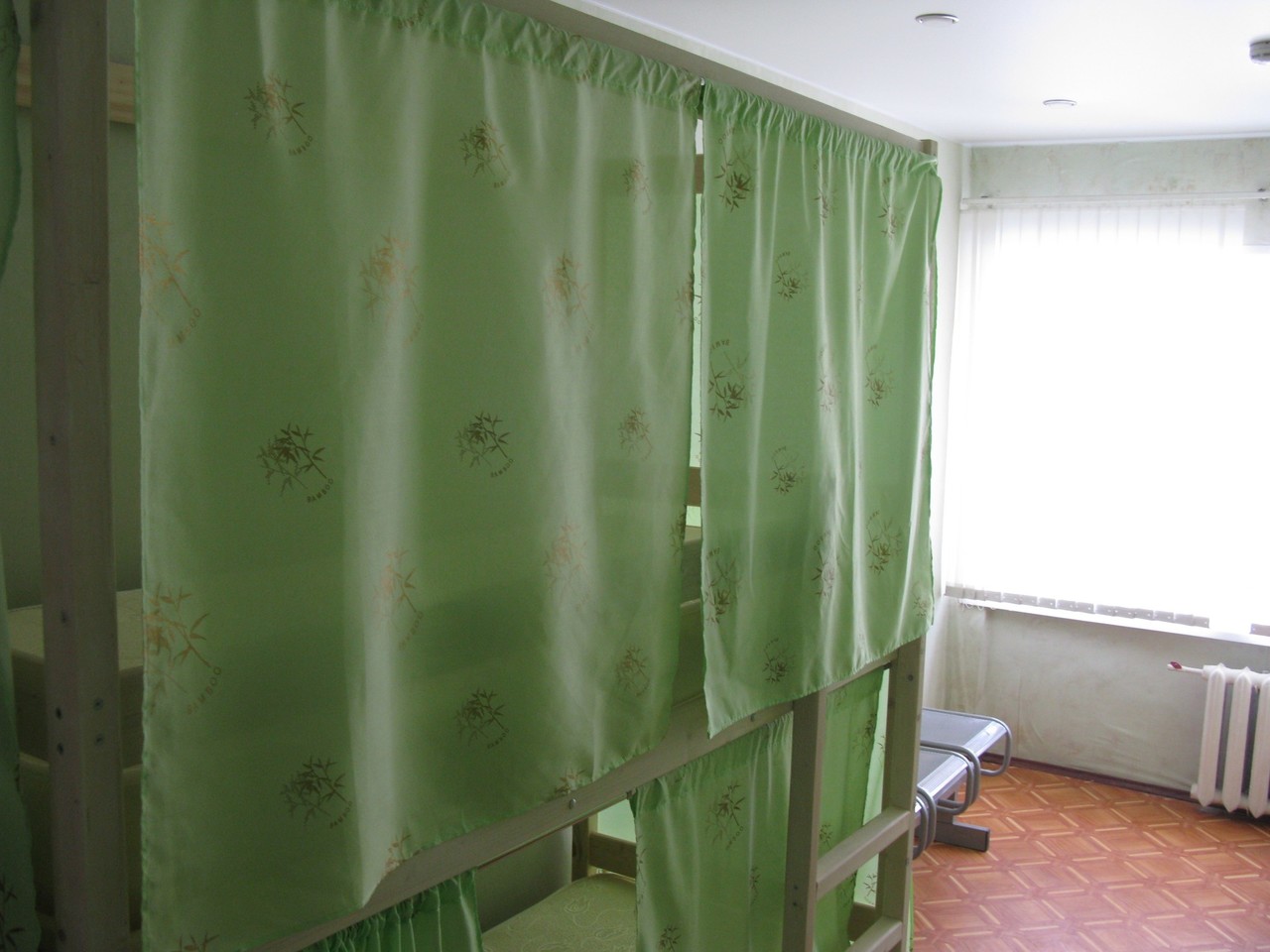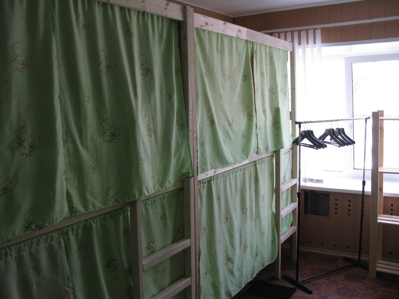 Четырехэтажное здание, хостел на 4 этаже, вход свободный до вечера, также есть кнопка для звонка администратору.