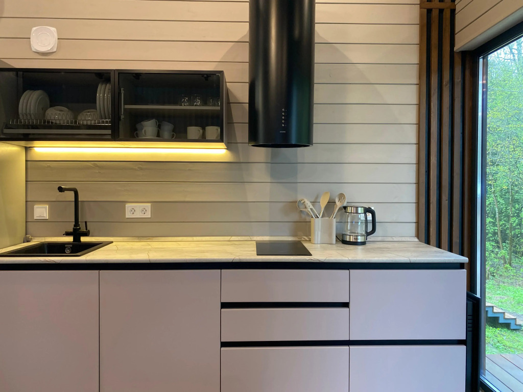 В доме имеется необходимое для проживания: спальня (спальное место 160х200), кухня-гостиная (диван раскладывается 140х200). Техника: Wi-Fi, Смарт-ТВ, плита, холодильник, стиральная машина, электрический чайник, дровяная печь, утюг, фен.