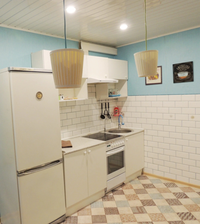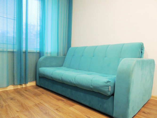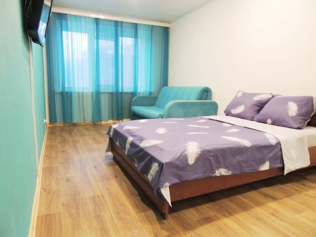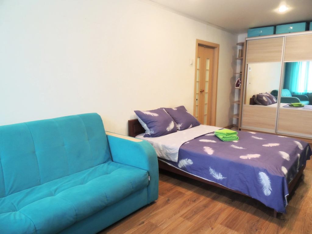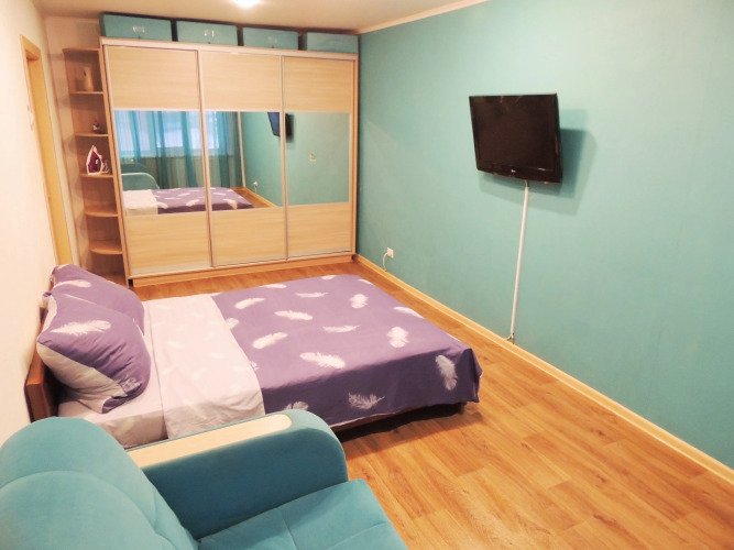 Просторная гостиная, широкая кровать, застеклённый балкон, а также полноценная кухня, в которой есть чай, сахар, кофе, микроволновка и всё для приготовления еды. В апартаментах также есть плазменный телевизор, кабельное телевидение, гели, шампуни, одноразовые тапочки, стиральная машина, холодильник, фен, утюг, гладильная доска.